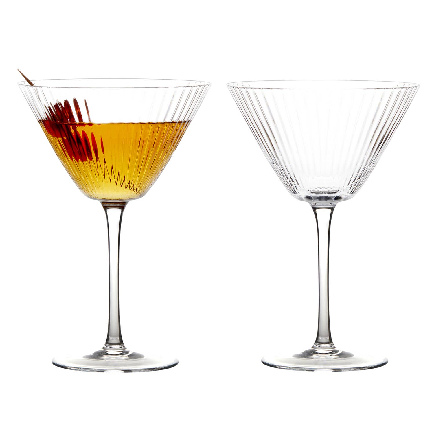 Elevate your cocktail experience with the Set of 2 Empire Clear Cocktail Glasses from the Empire Collection. Each glass features a contemporary-shaped bowl with rounded corners and a fine optic design, perfectly complemented by tall, elegant stems. Handmade by skilled craftsmen, these glasses are smartly gift-boxed and make for a fantastic addition to your barware collection.