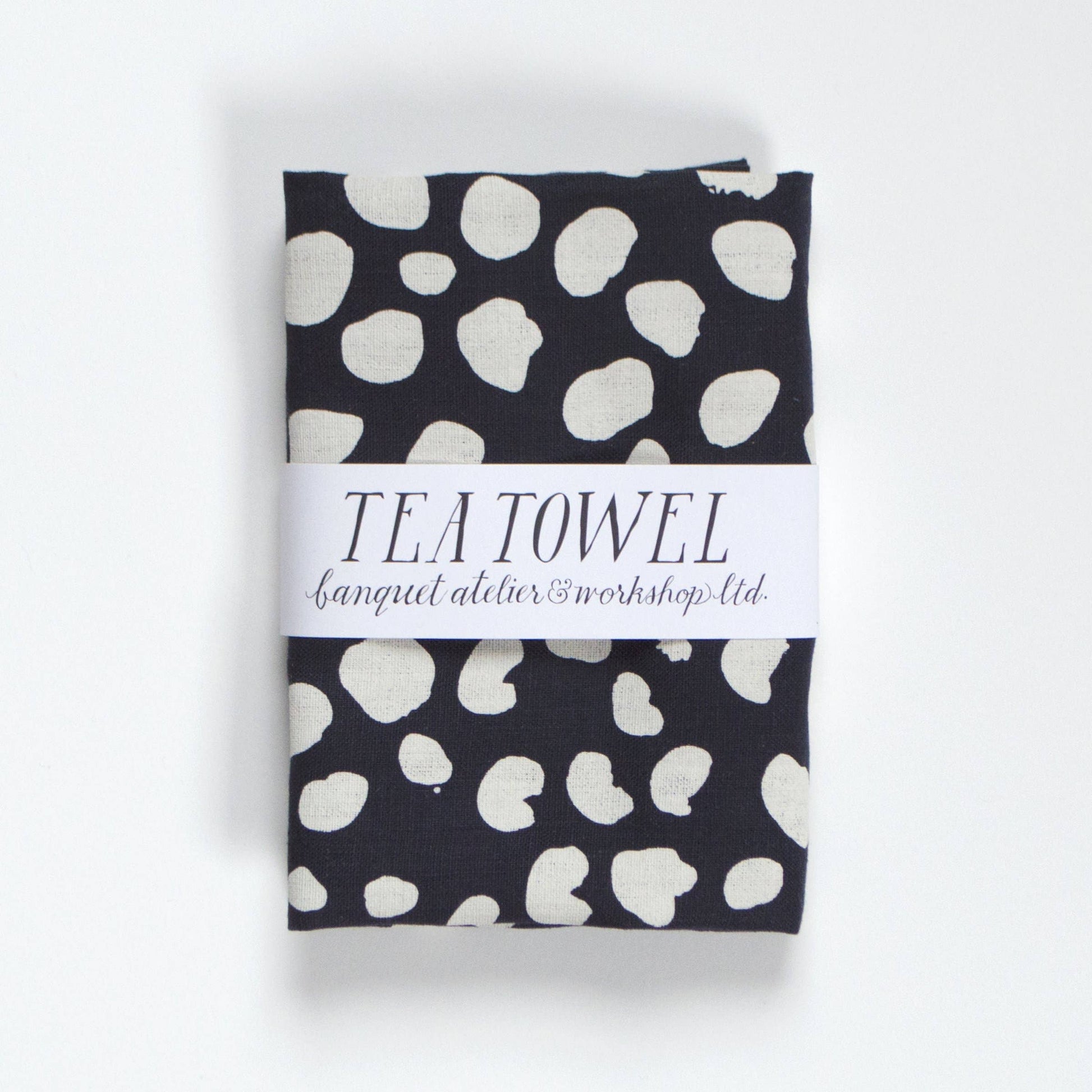 All Linen Tea Towel-Animals Spot Dots - Cream on Navy