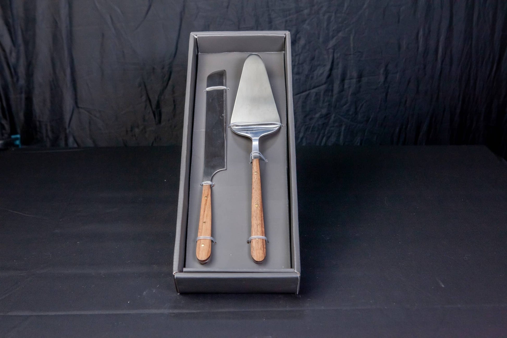 2pc Cake Serving Set w/ Wood Handles: Natural / Stainless Steel