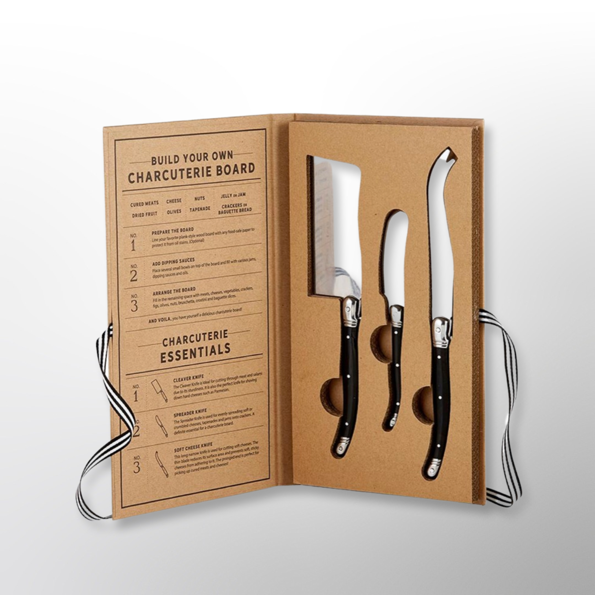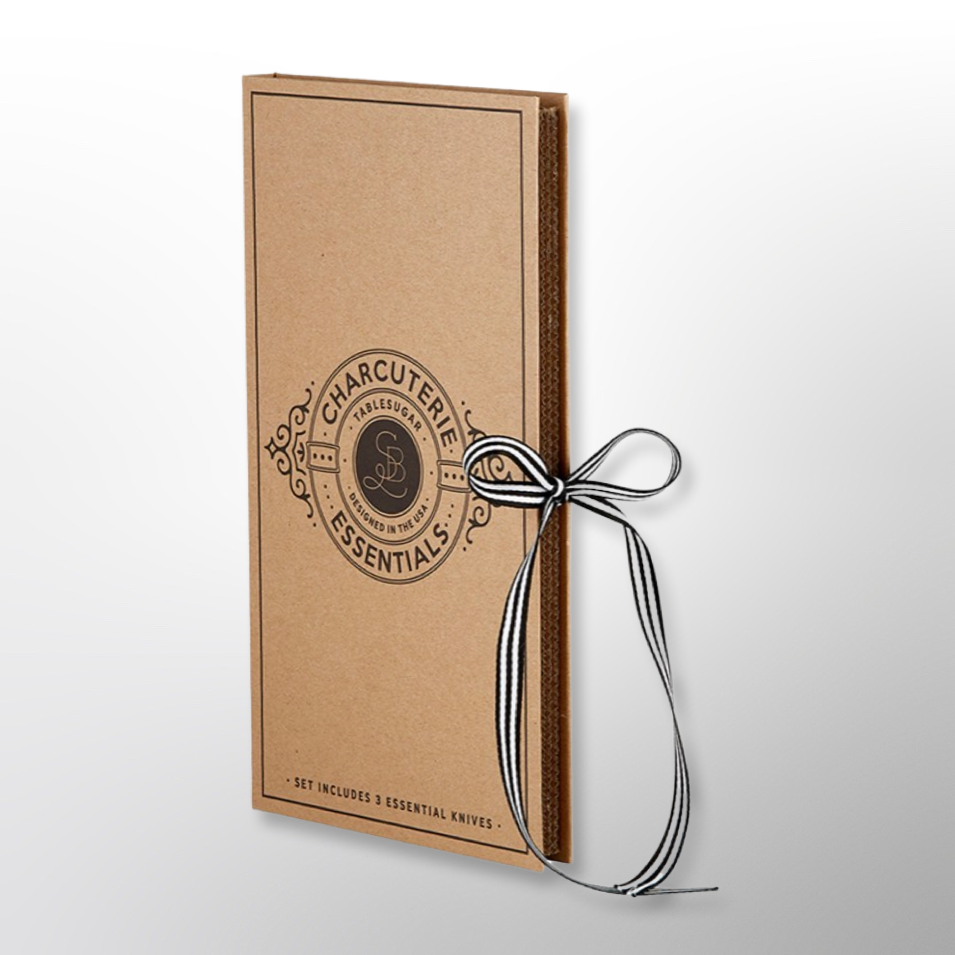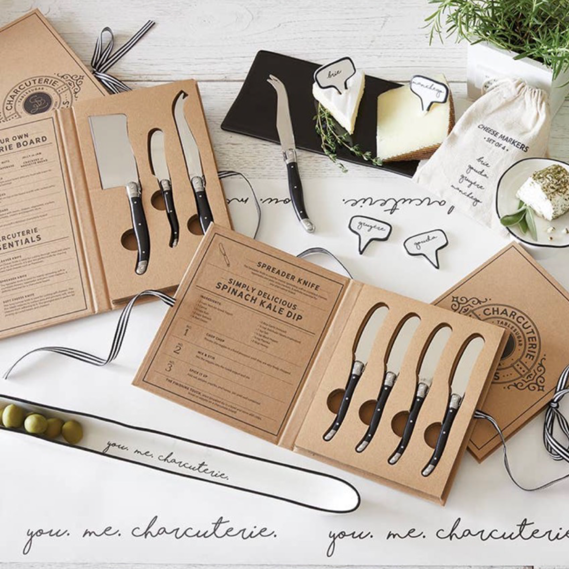 Unique charcuterie essentials cardboard box packaging makes these a great gift.