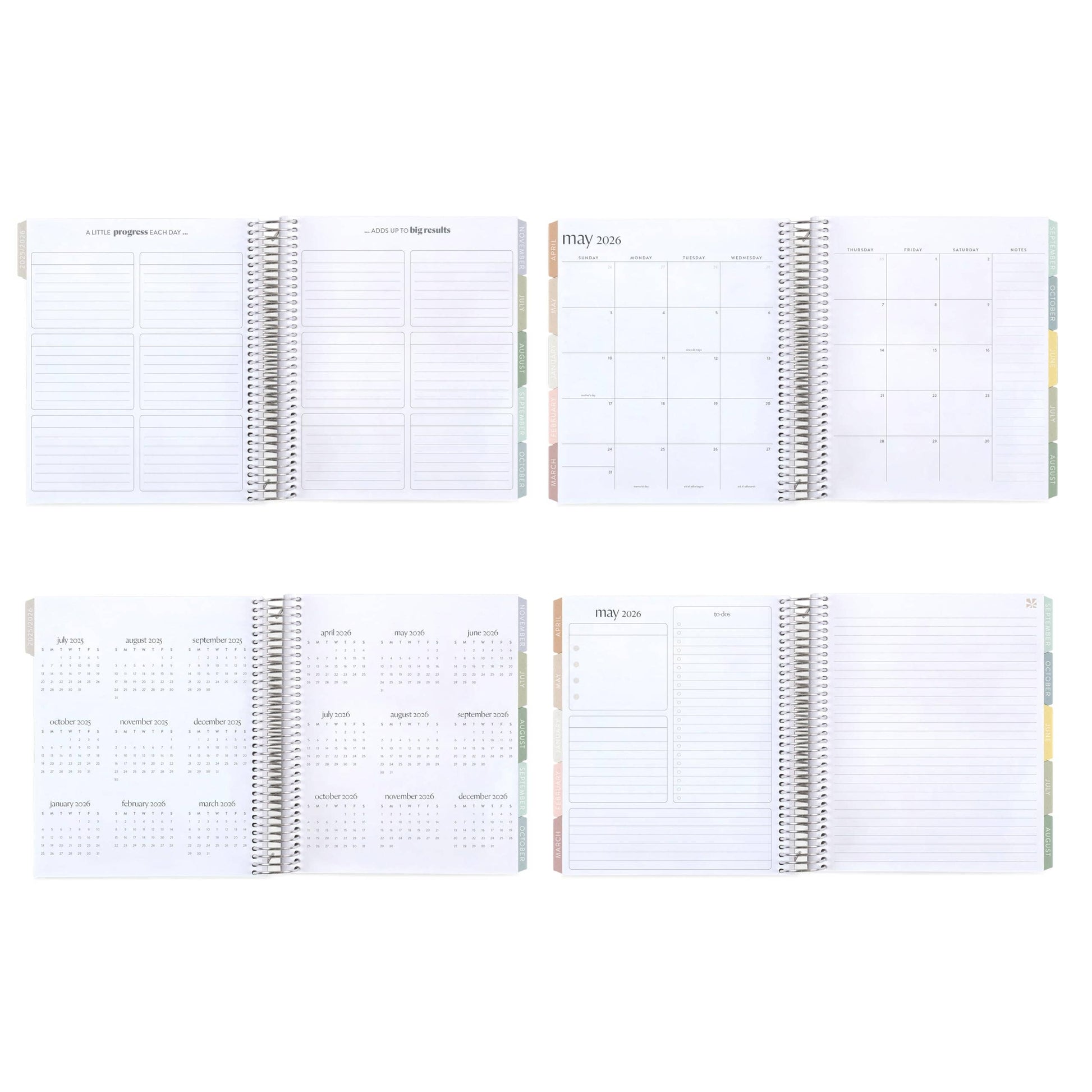 The perfect combo of calendar pages and note pages for big-picture planning, scheduling, goal setting, journaling, and productivity tracking all in one place.