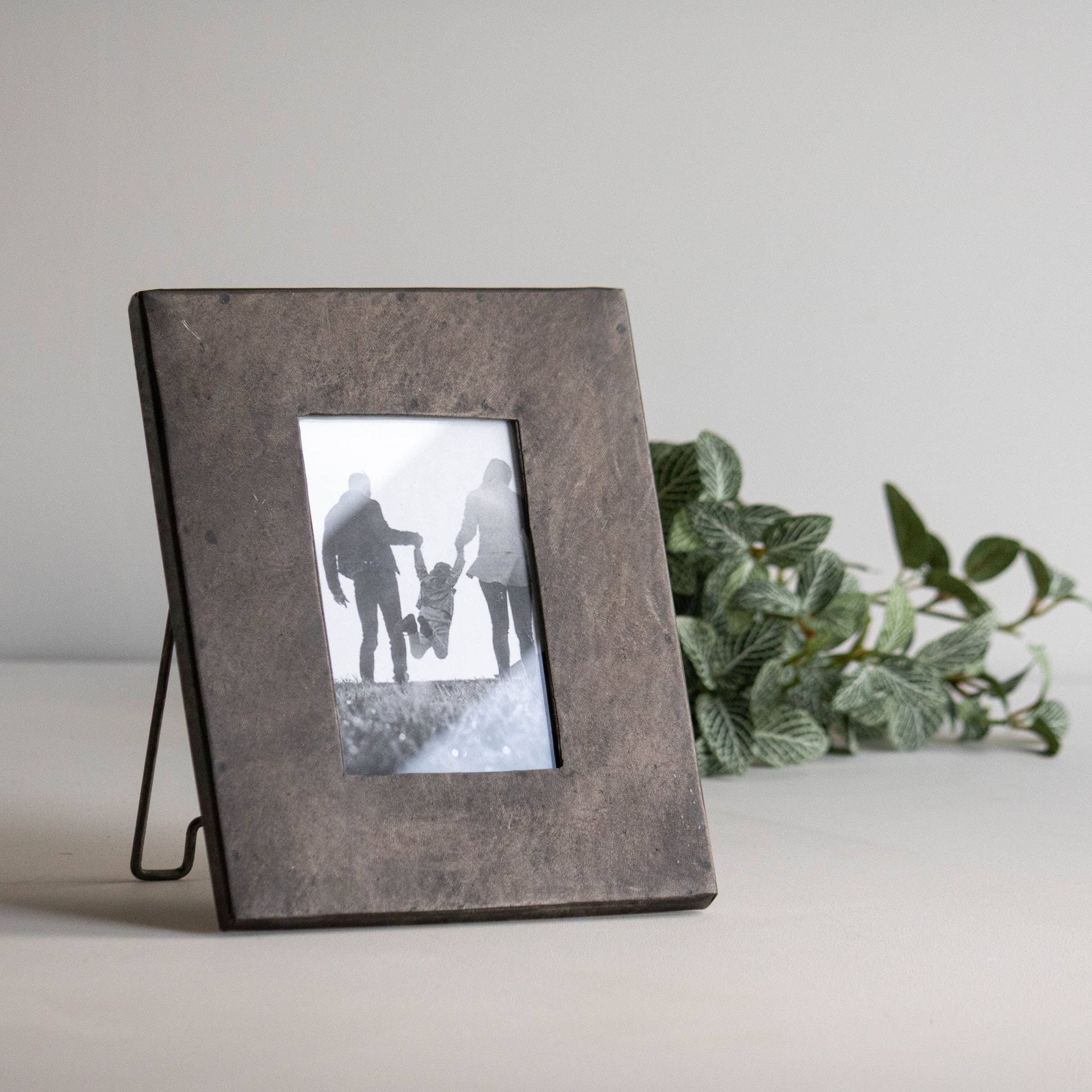 A 4x6 picture frame designed to be the perfect transitional frame to bring a touch of rustic farmhouse to any space. Its look is defined by a luxe matte galvanized finish with warm charcoal and bronze tones that are both transitional and textural.