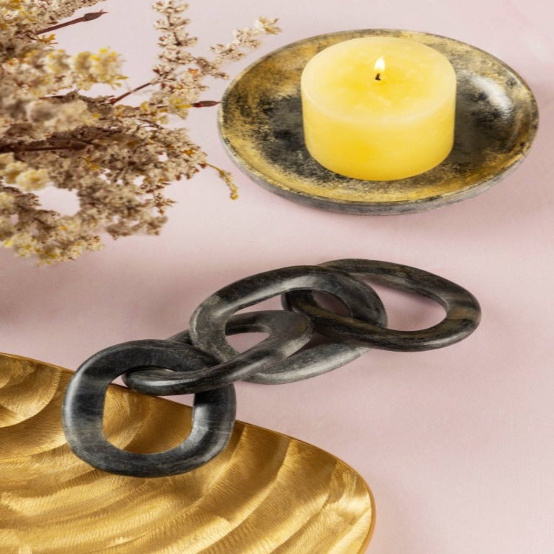 Package includes: One chain link decorative accent Four solid marble rings that are linked together to form