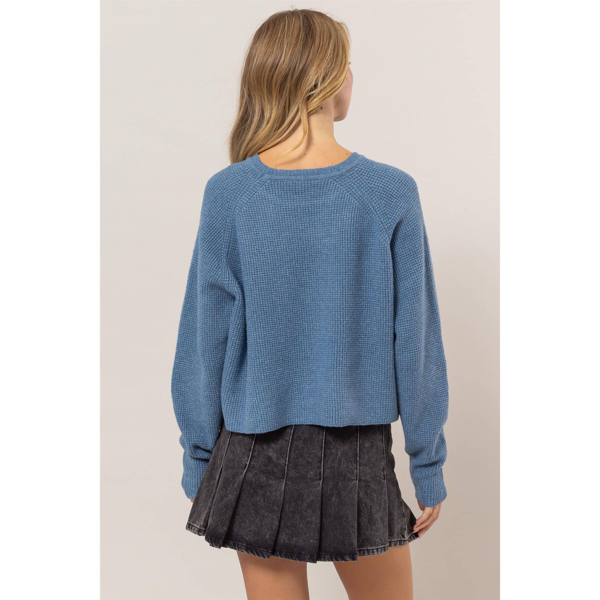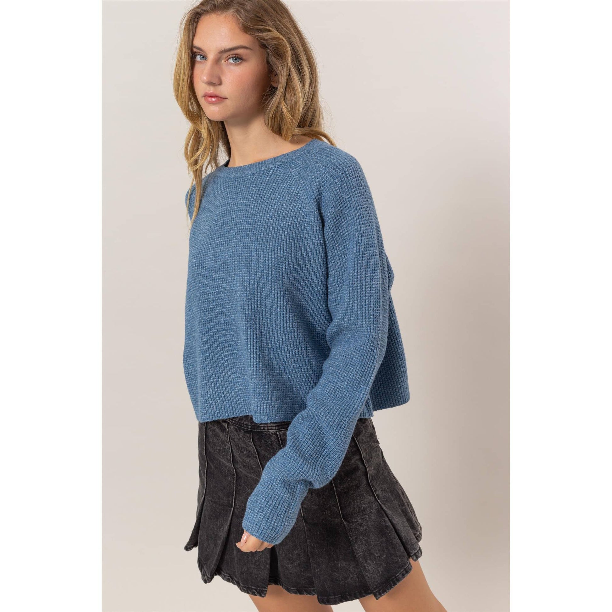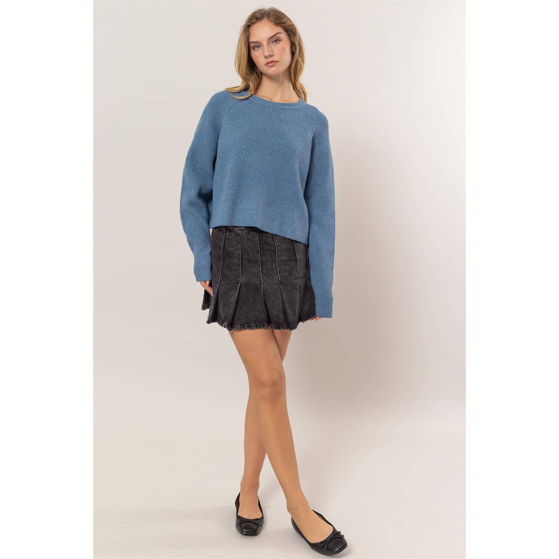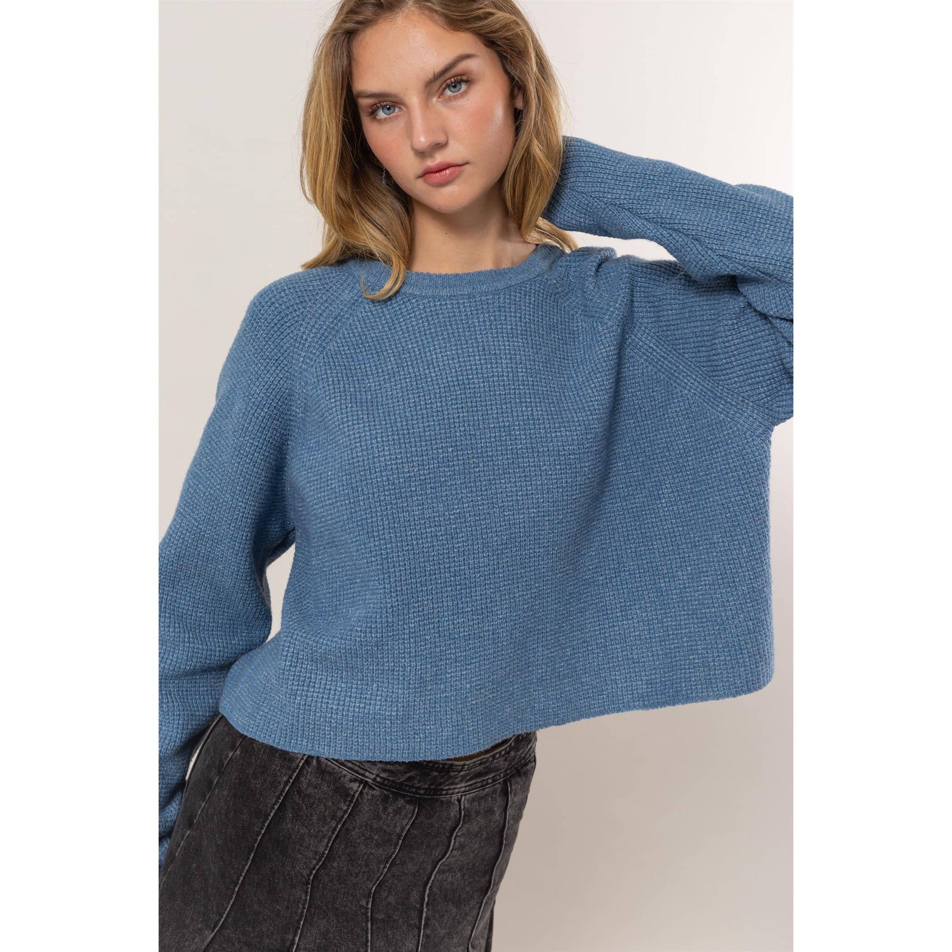 Oversized Raglan Sleeve Sweater: GRAY BLUE
