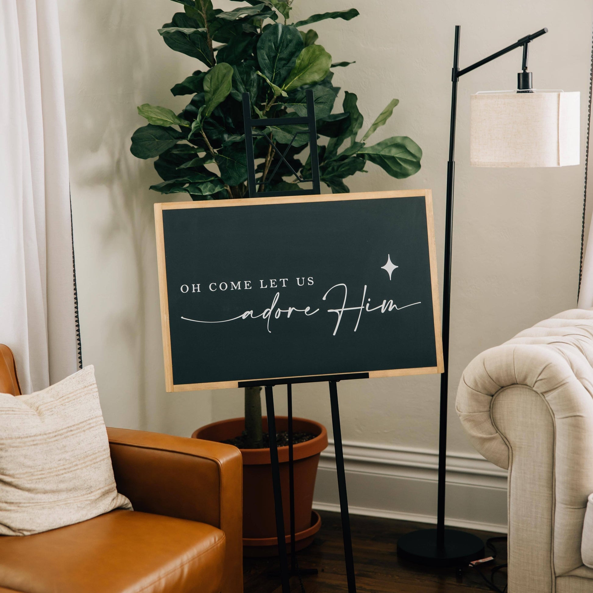 Keep the reason for the season in focus with this beautiful word artwork, featuring lyrics from the classic hymn "O Come Let Us Adore Him."
