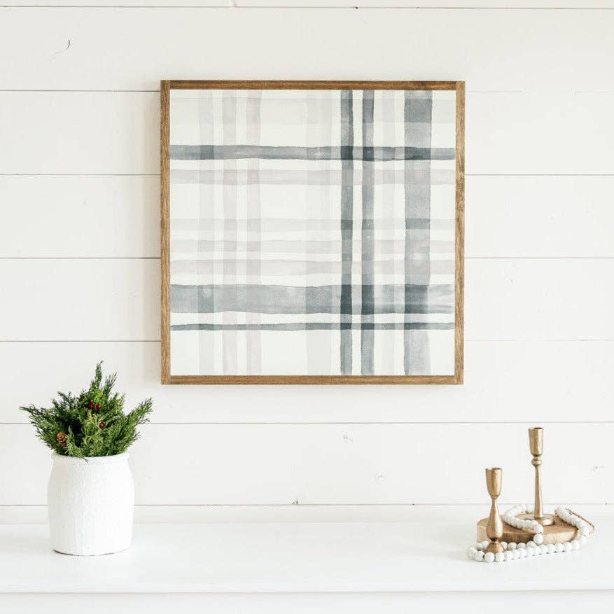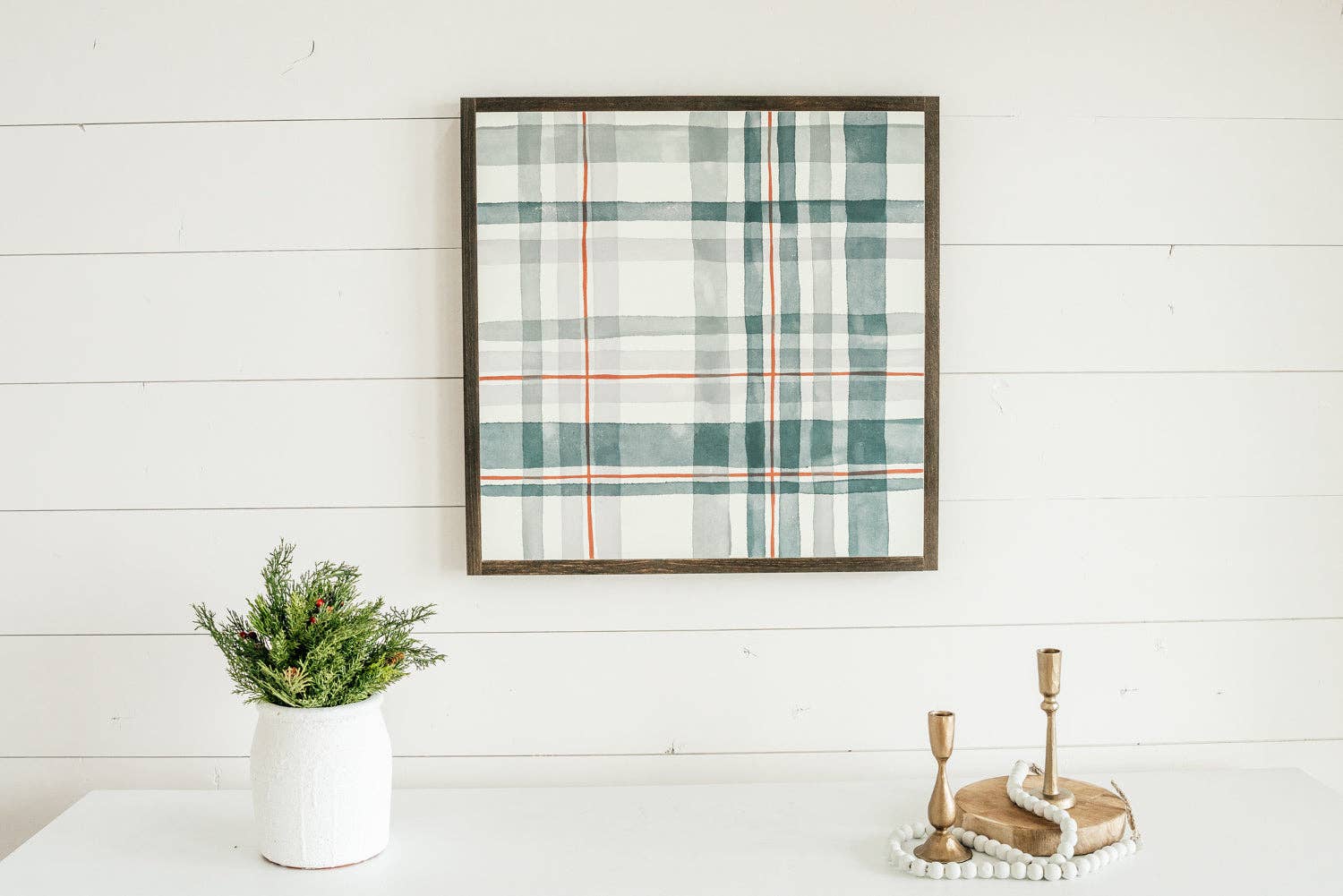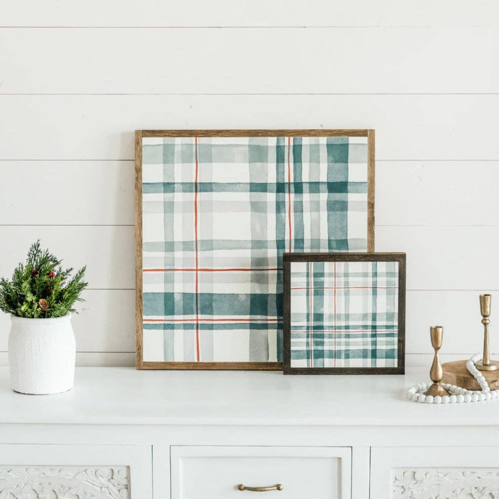 Plaid About You Festive or Gray | Fine Art: Festive / Light Brown Frame / 24 inches x 24 inches