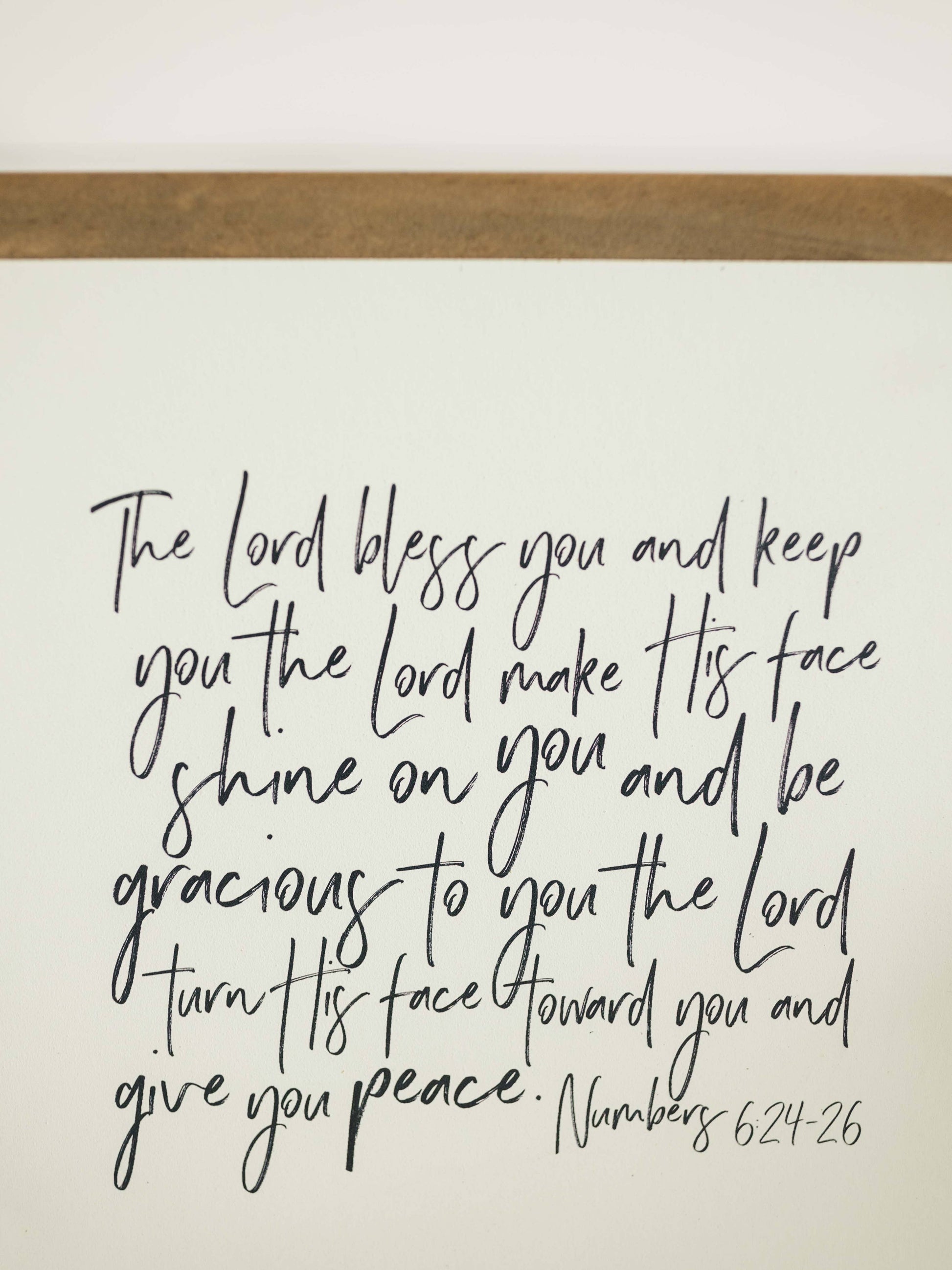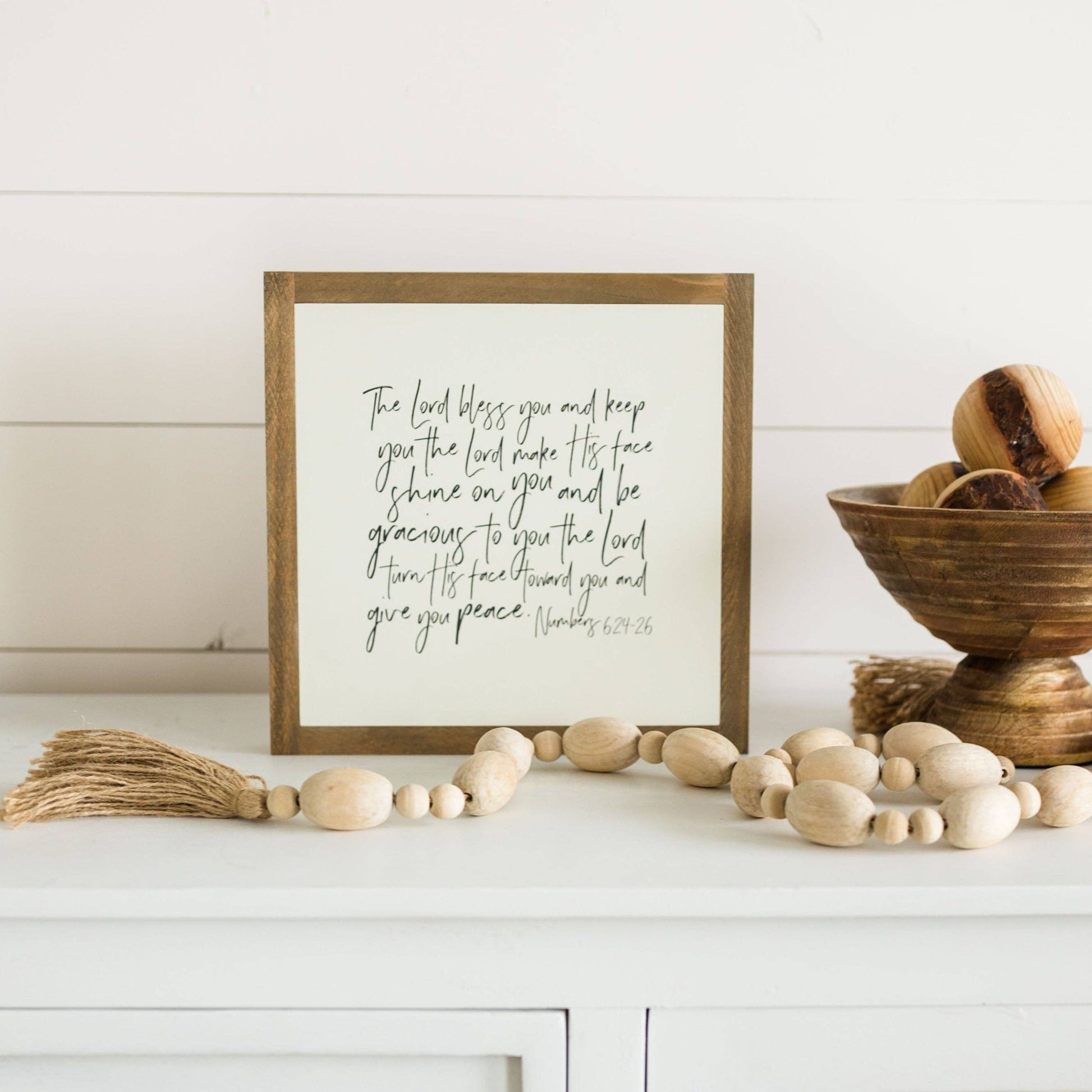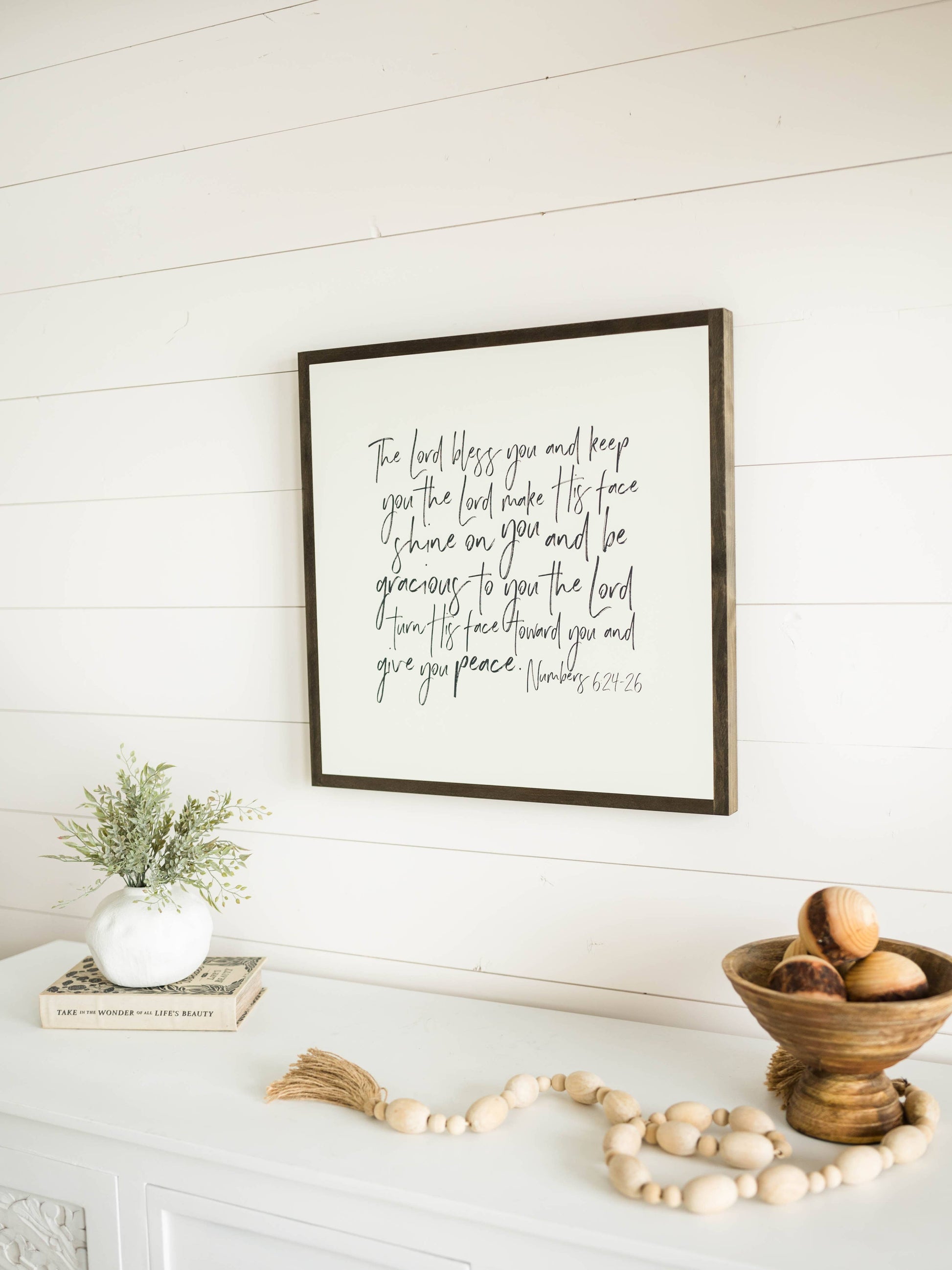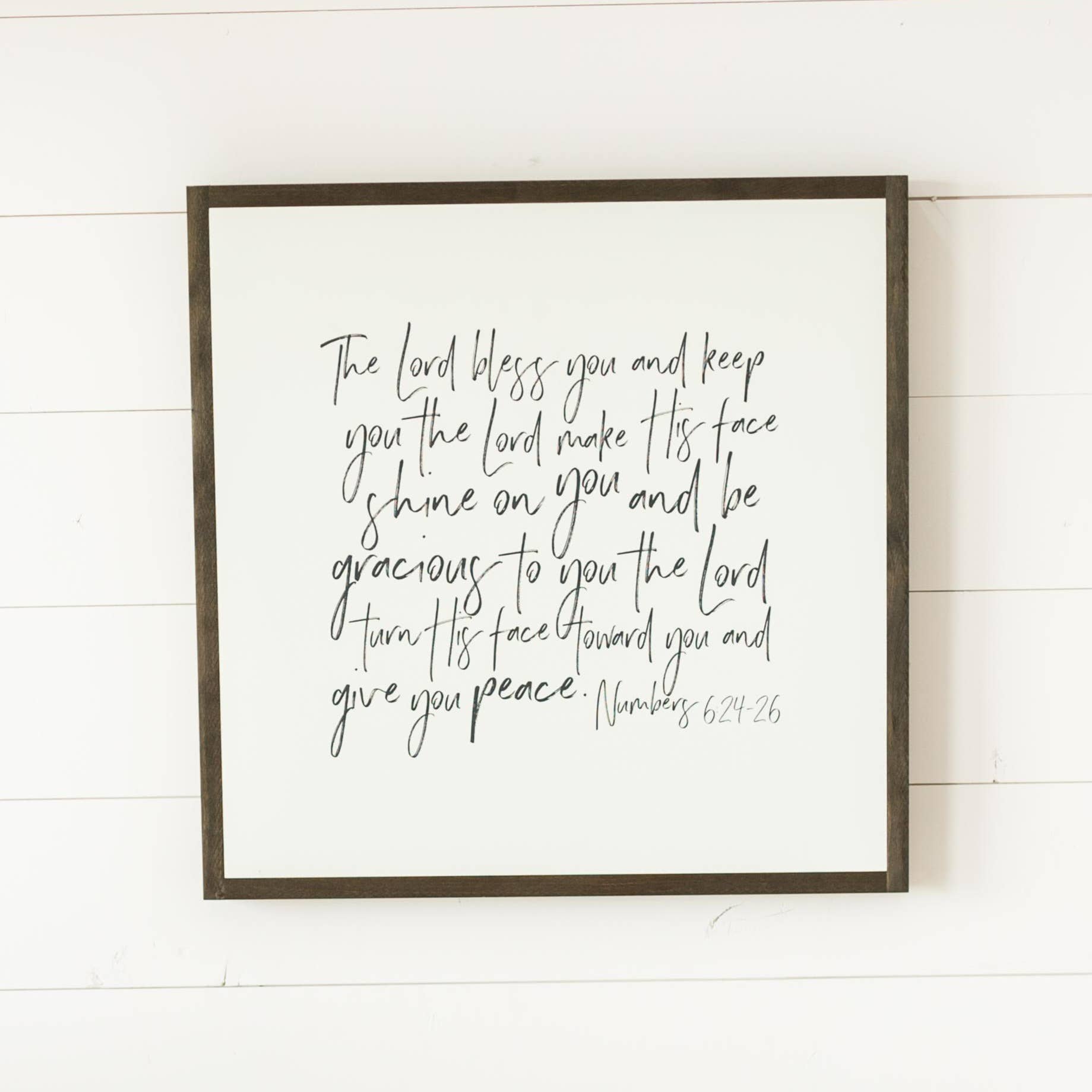 The Lord Bless You | Wall Art: Soft White-Black Text / Dark Brown Frame / 24 inches x 24 inches