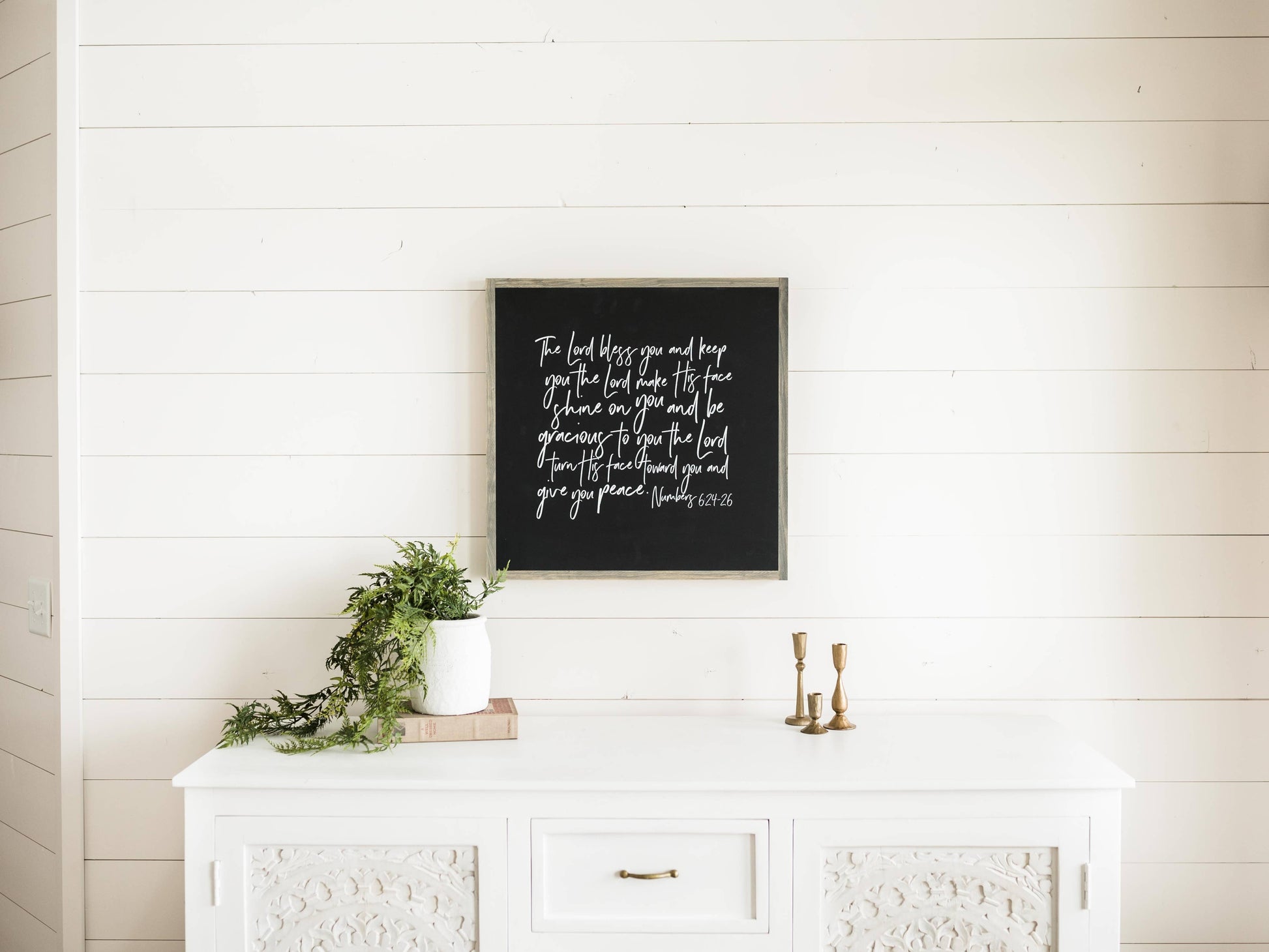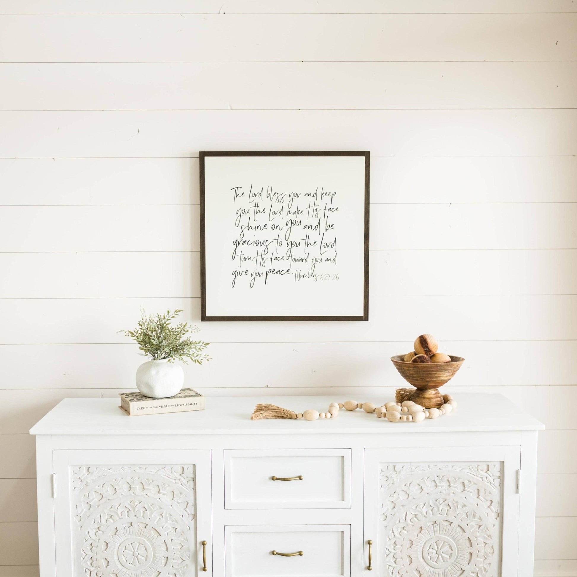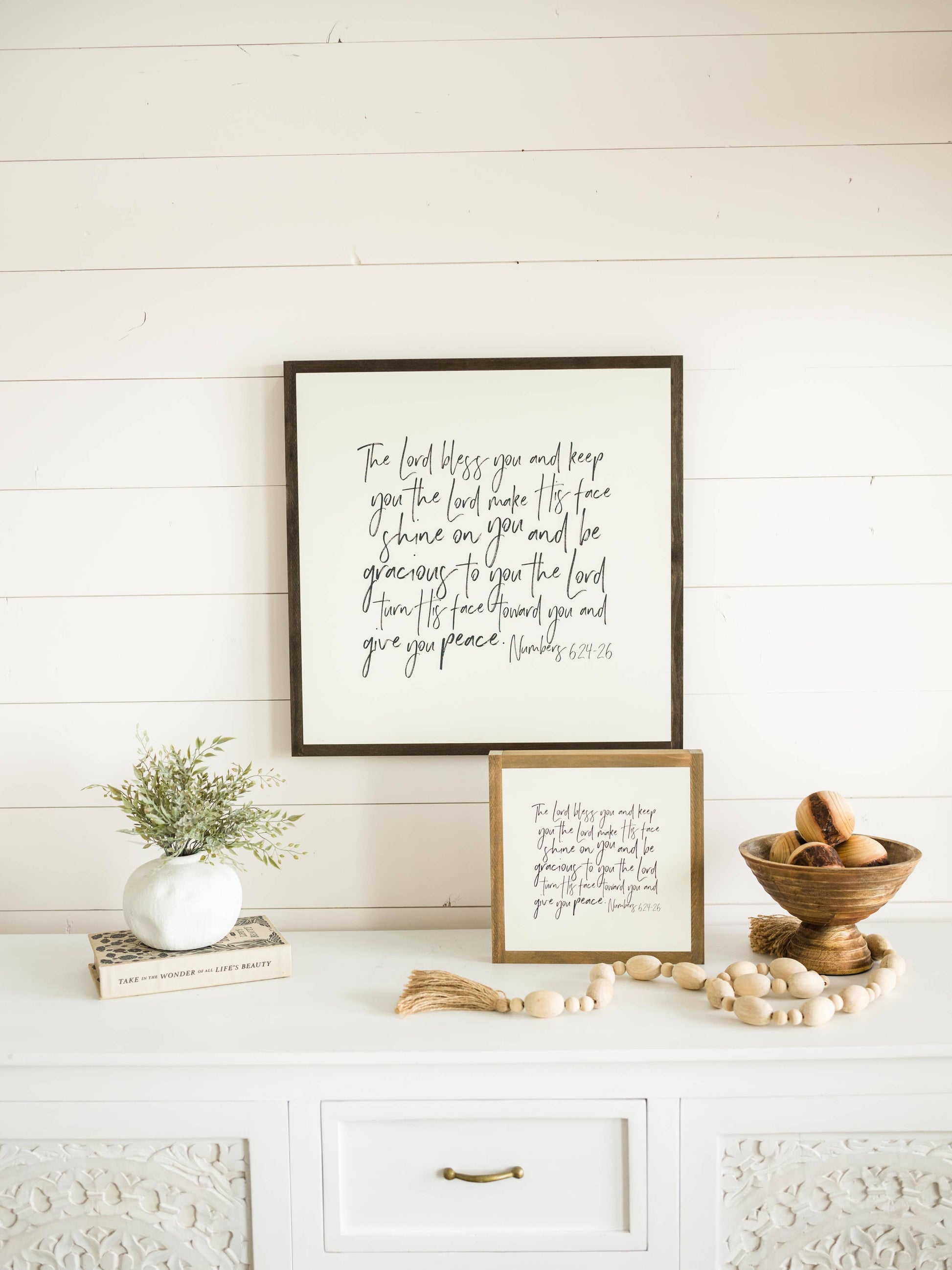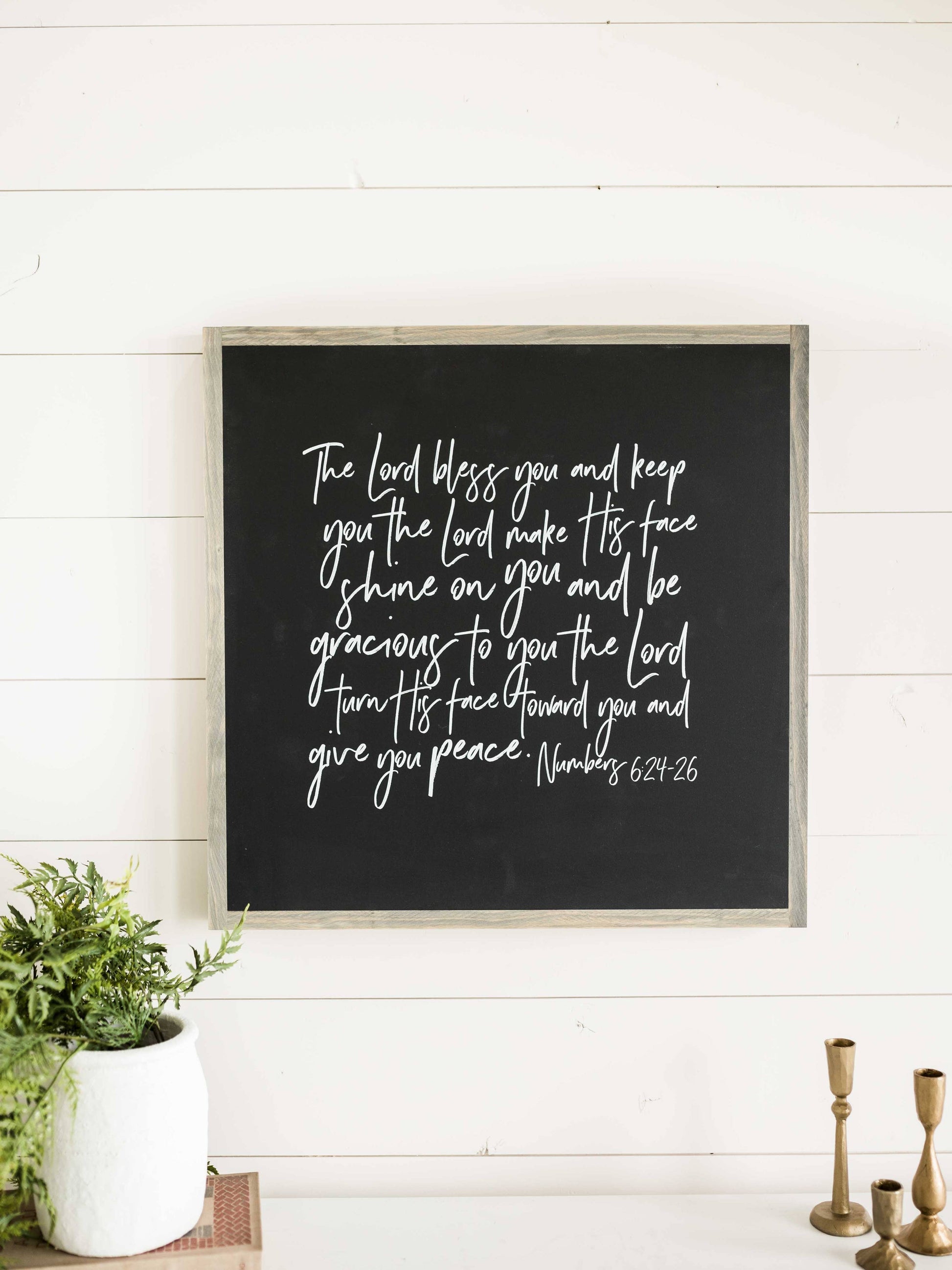 The Lord Bless You | Wall Art: Soft White-Black Text / Dark Brown Frame / 24 inches x 24 inches