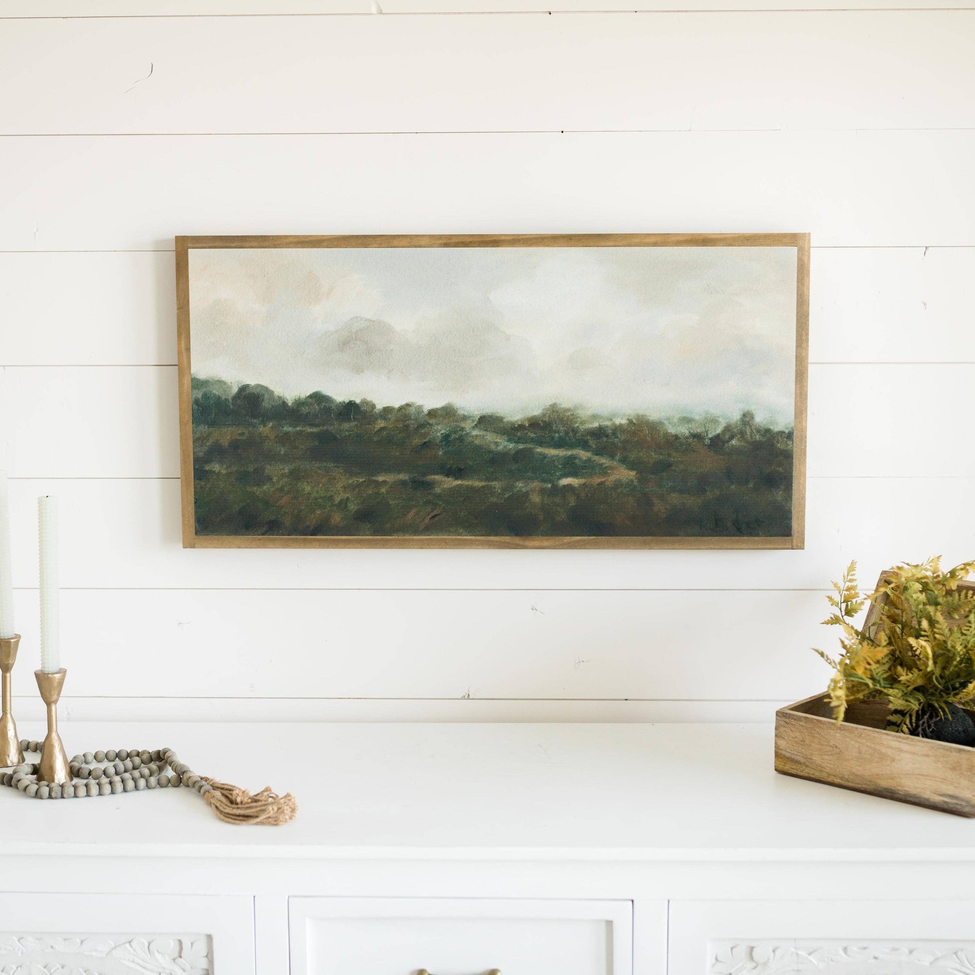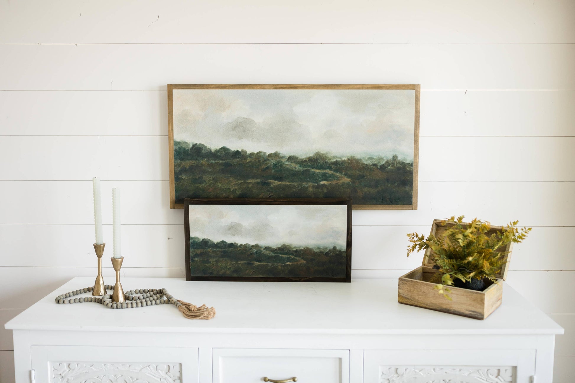 Warm, rich tones make this landscape by artist Anee Shah the perfect choice to accent a space. Choose the larger size, 36"x18", to help customers fill the space over the sofa, bed, or console table while the 24"x12" accents a shelf or kitchen backsplash nicely.