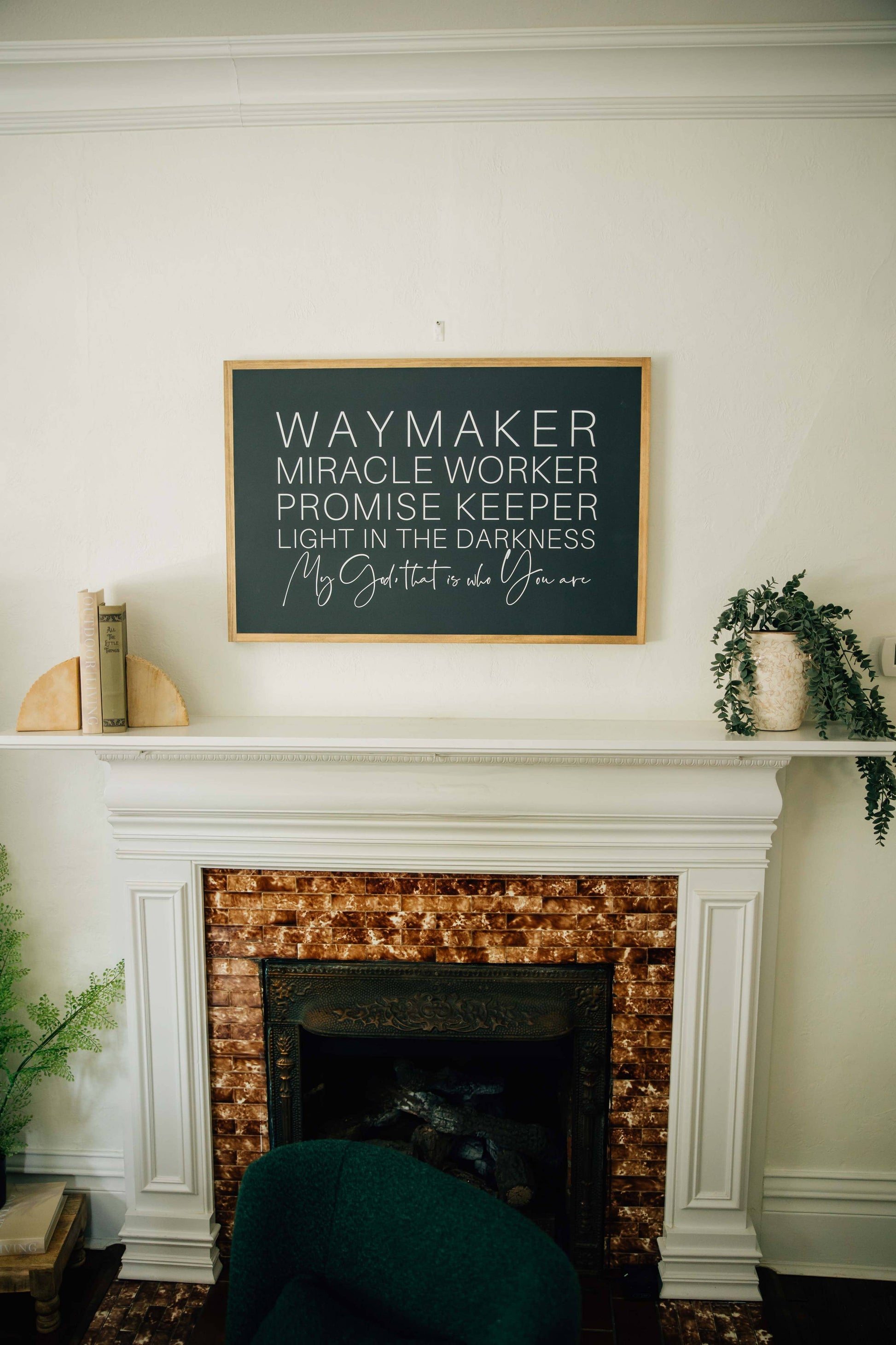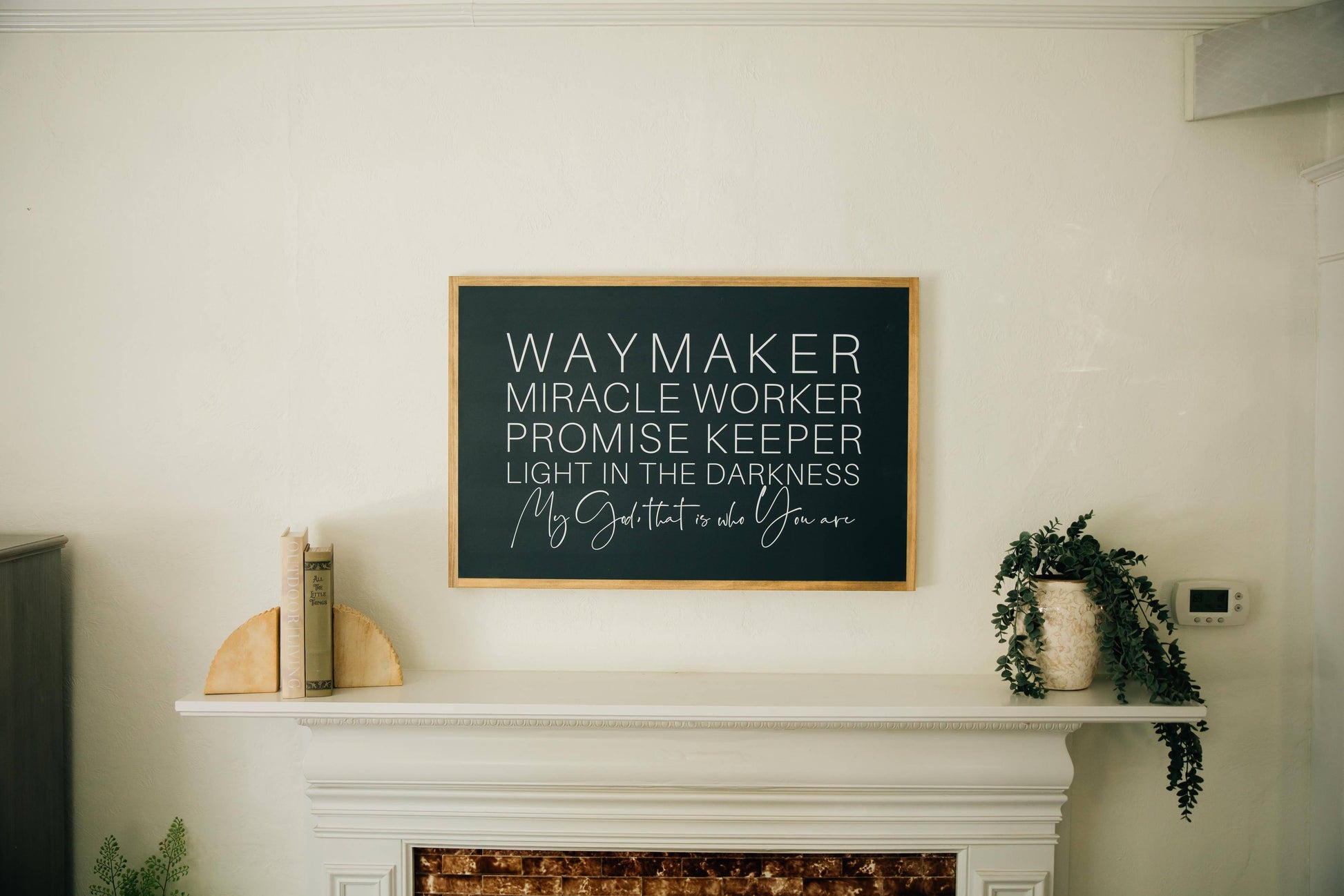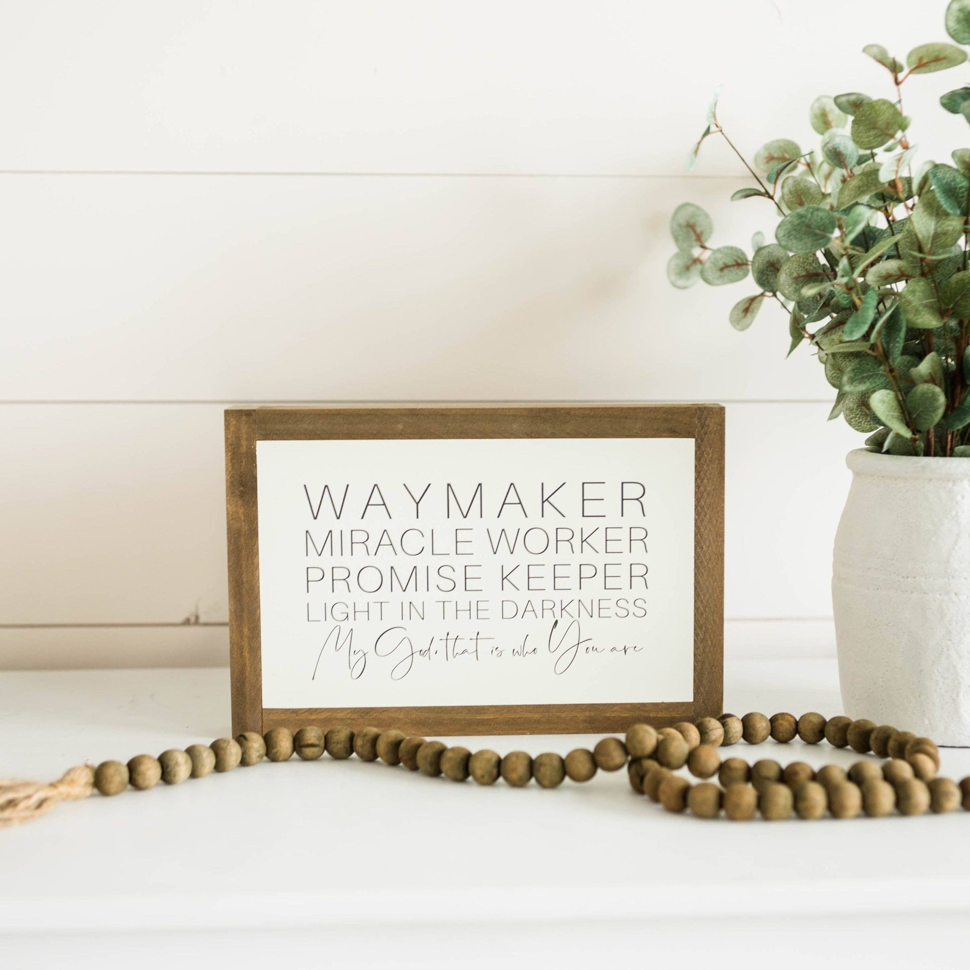 Waymaker | Wall Art: Soft White-Black Text / Light Brown Frame / 12 inches x 8 inches