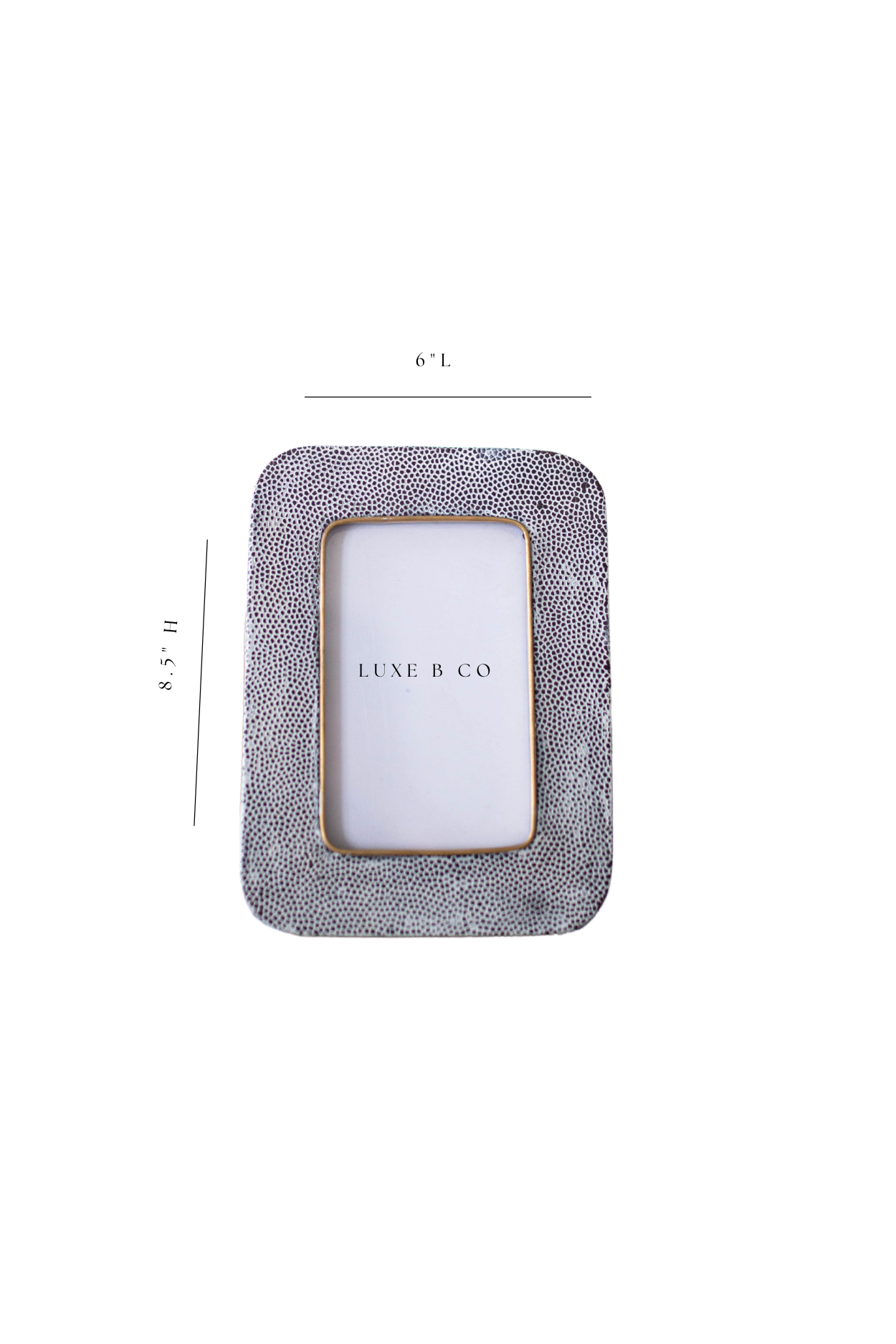 This handcrafted grey photo frame combines brass and leather for a unique and visually pleasing design. Each frame is made individually, so slight variations from the displayed product are to be expected.