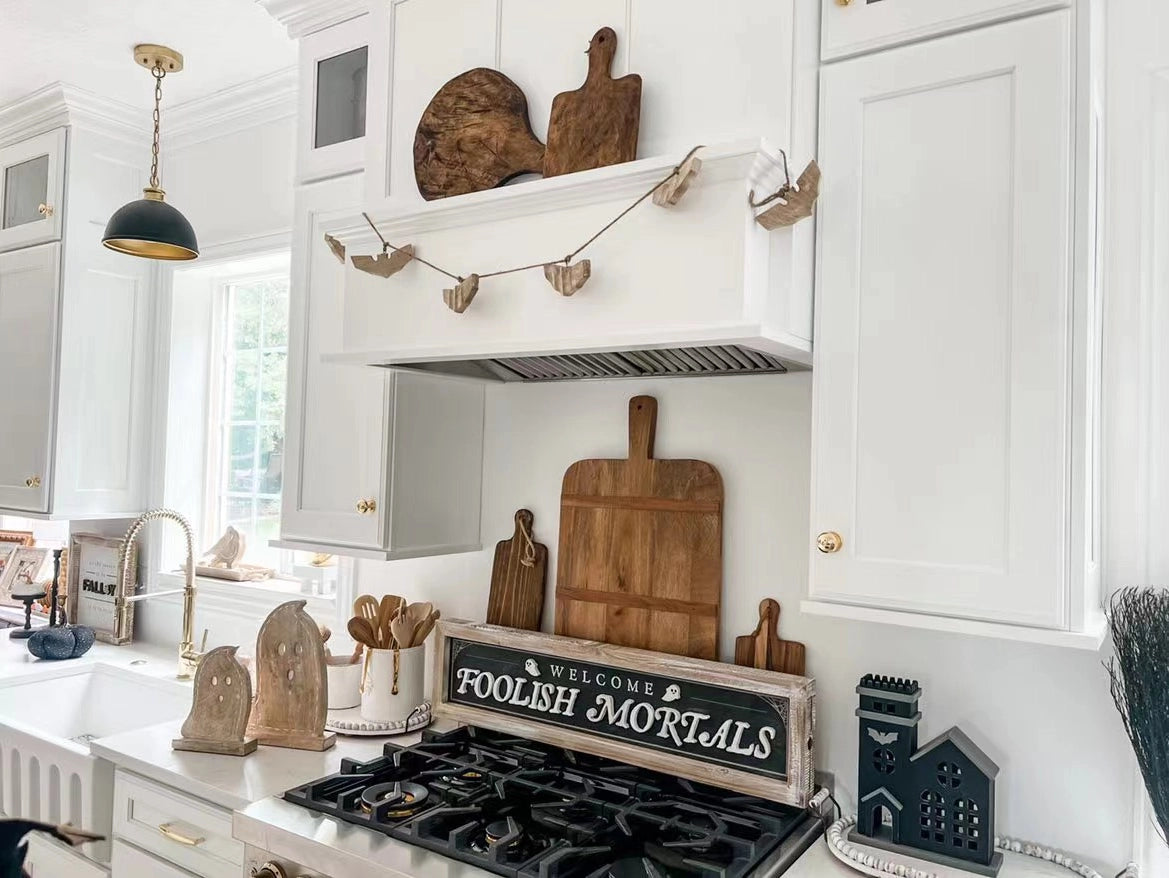 This mango wood bat garland is soooo nice! All of the bats are thick and chunky and look fantastic on a mantle or shelf.