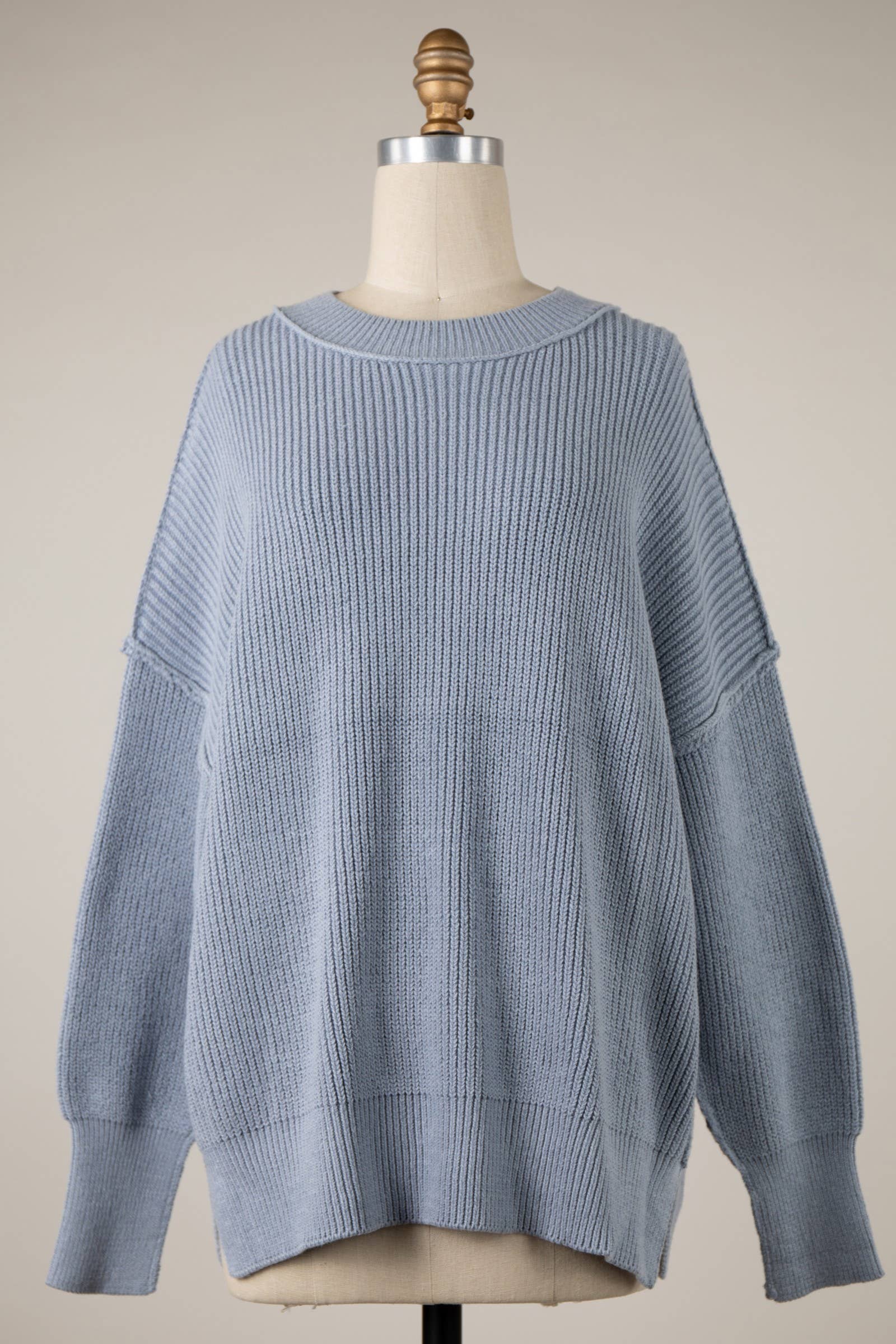 Neutral Oversized Ribbed Knit Sweater Top: BLUE GREY