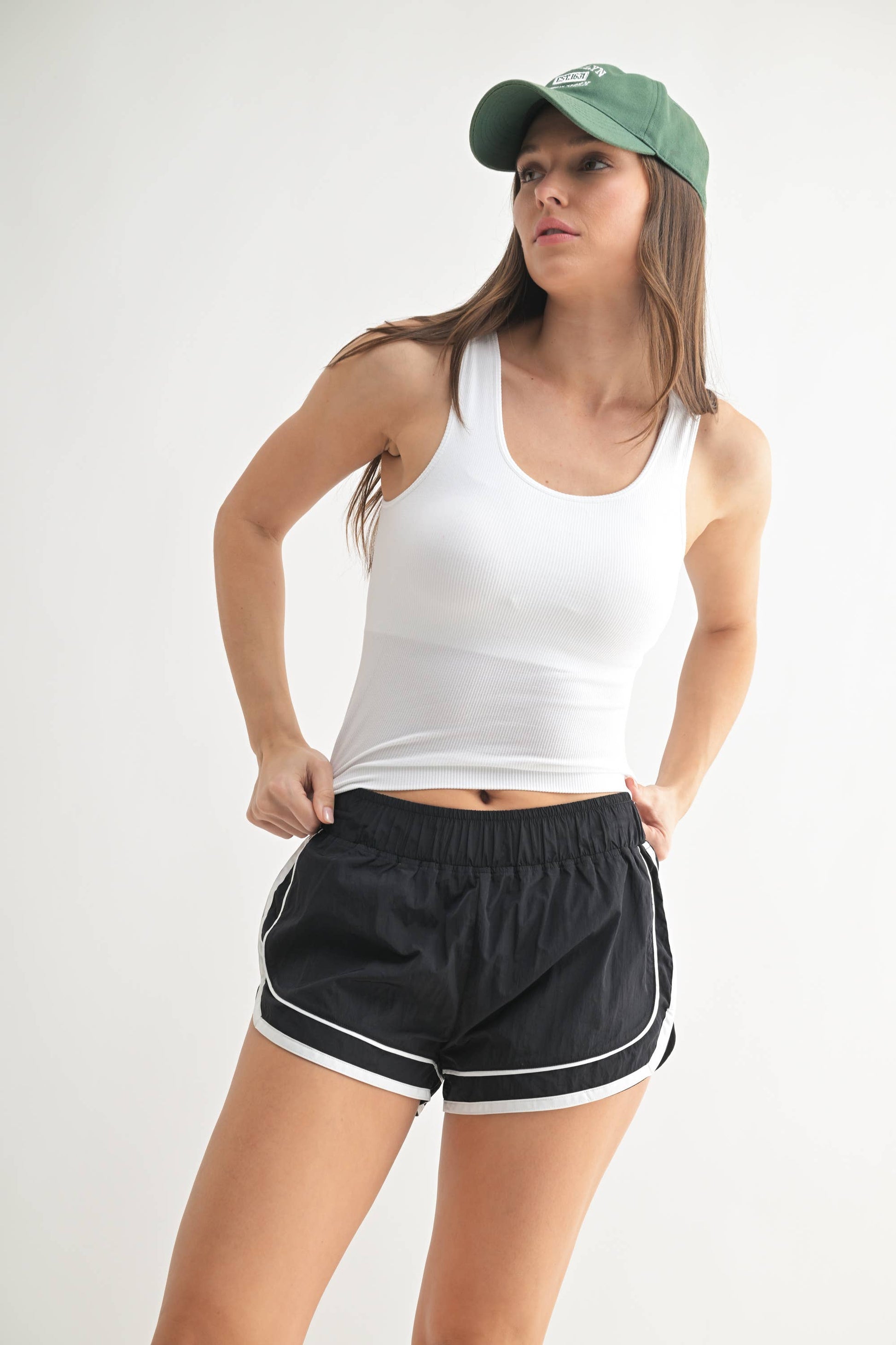 A true classic! This tank top features a full length design, is ribbed and seamless, has a flattering scoop neckline, and a built ink bra for additional support.