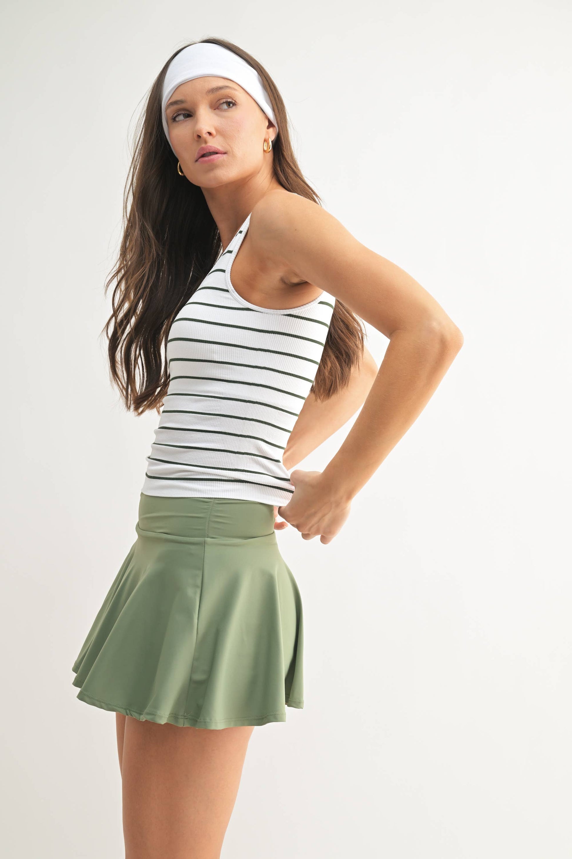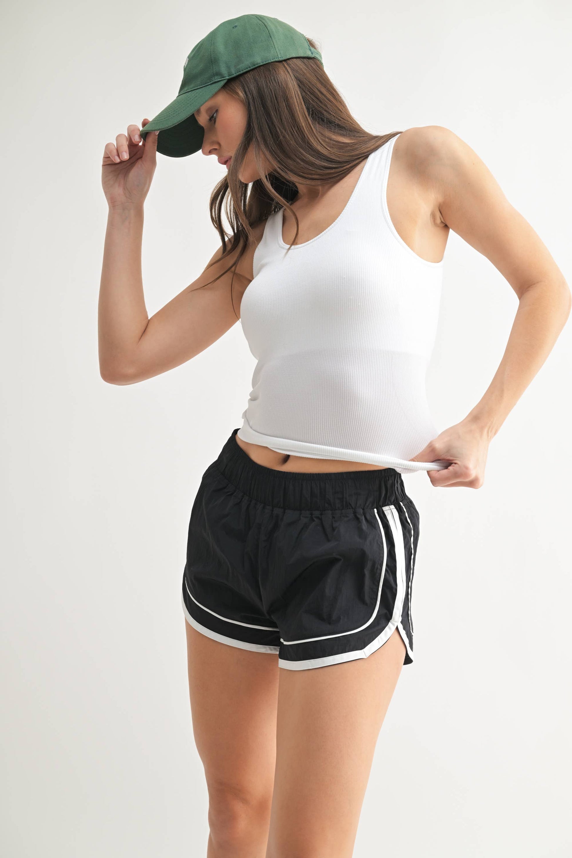 A true classic! This tank top features a full length design, is ribbed and seamless, has a flattering scoop neckline, and a built ink bra for additional support.