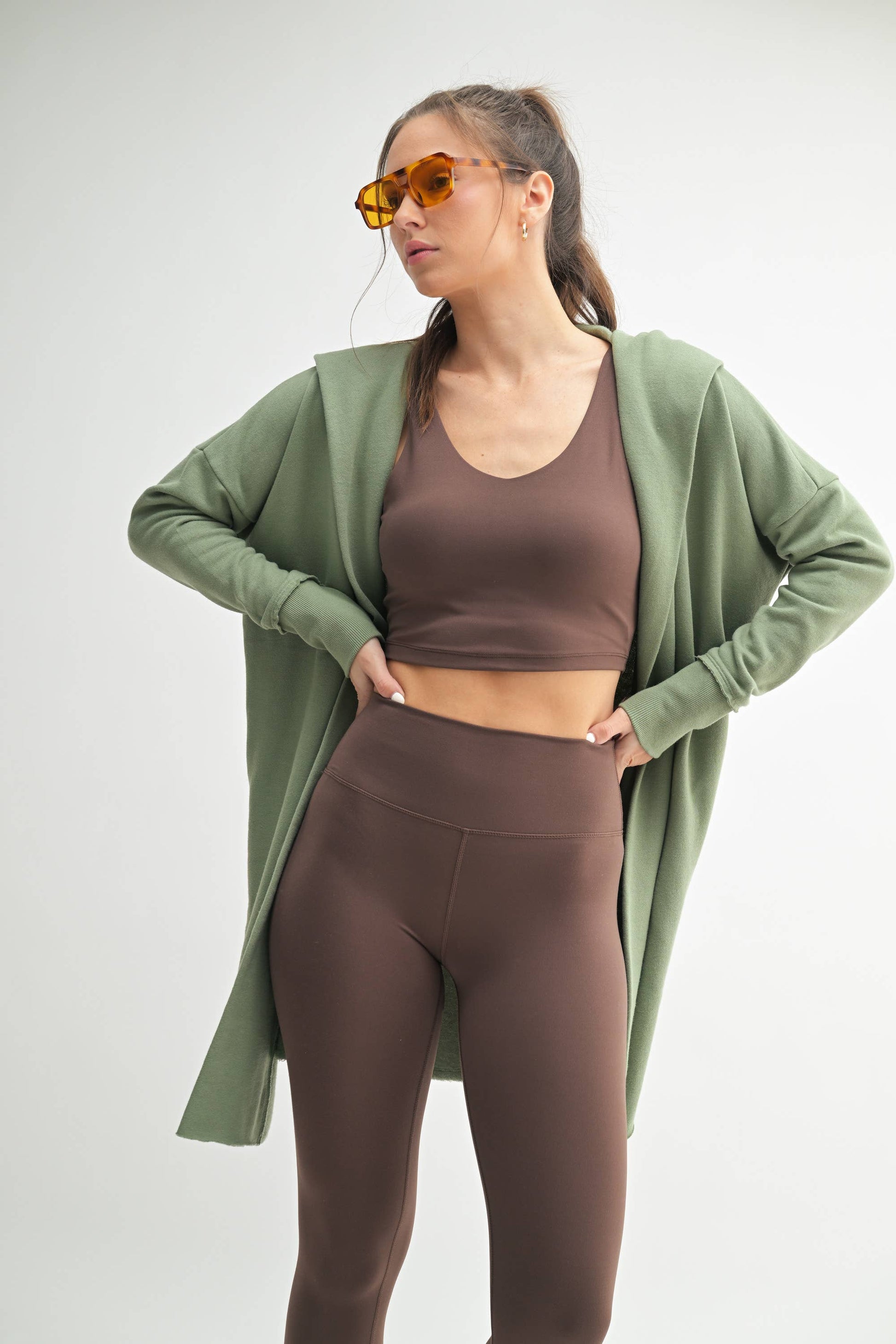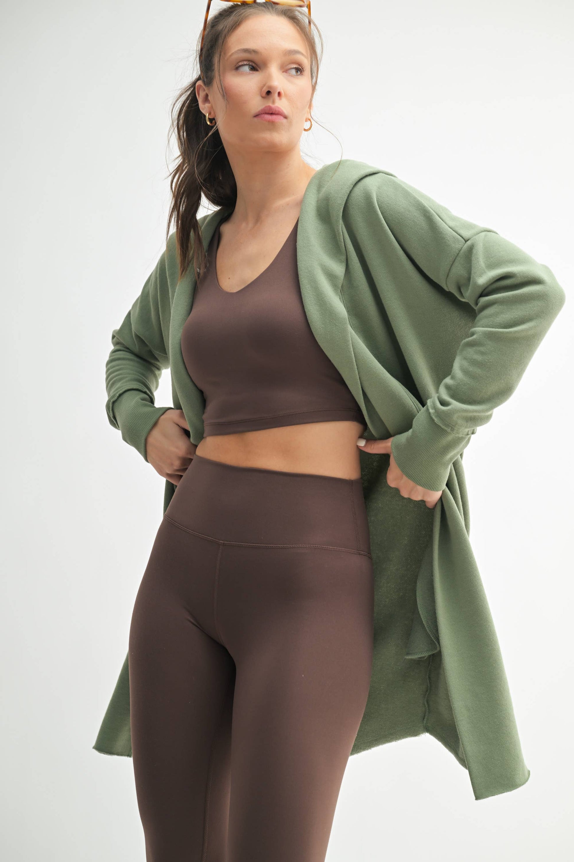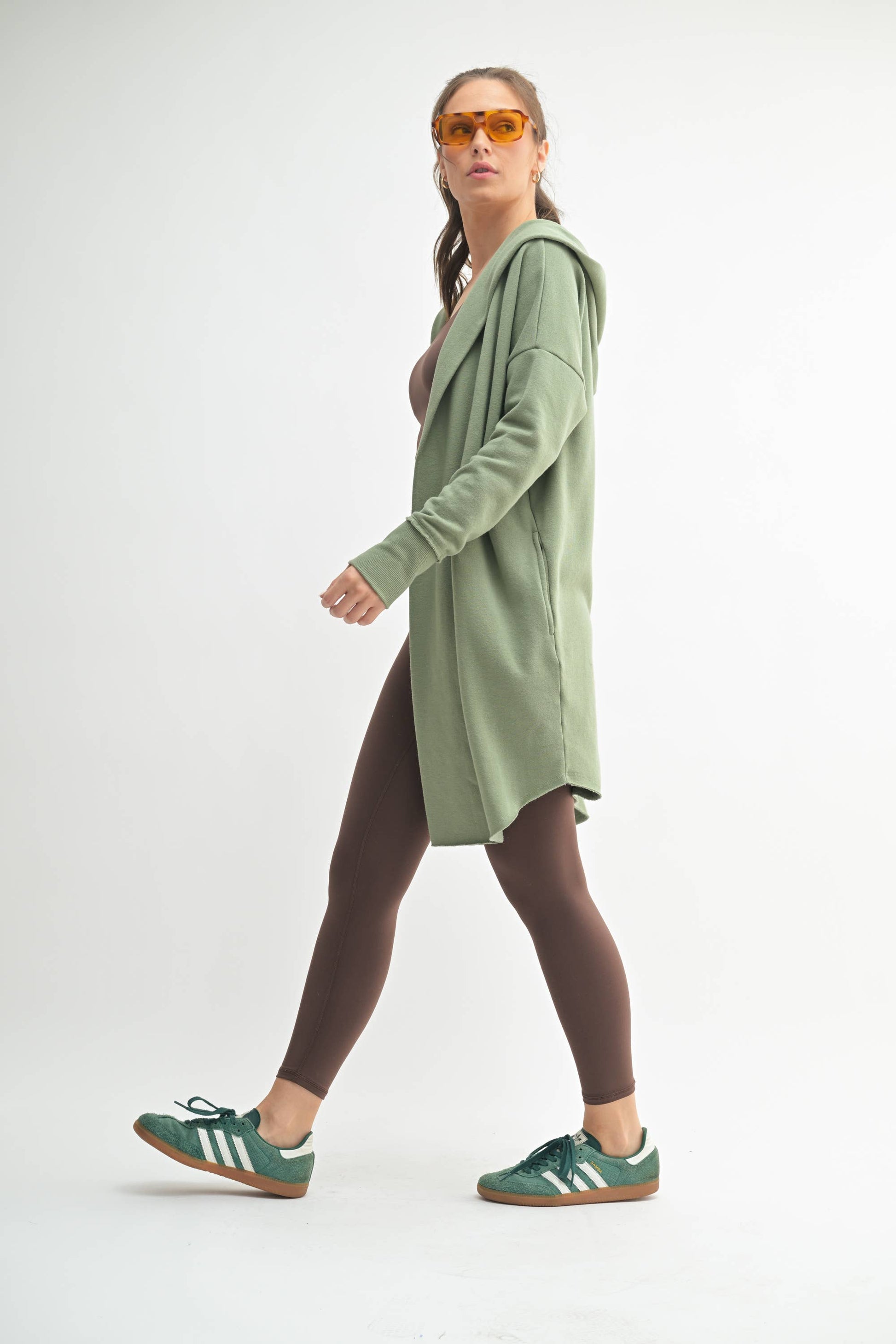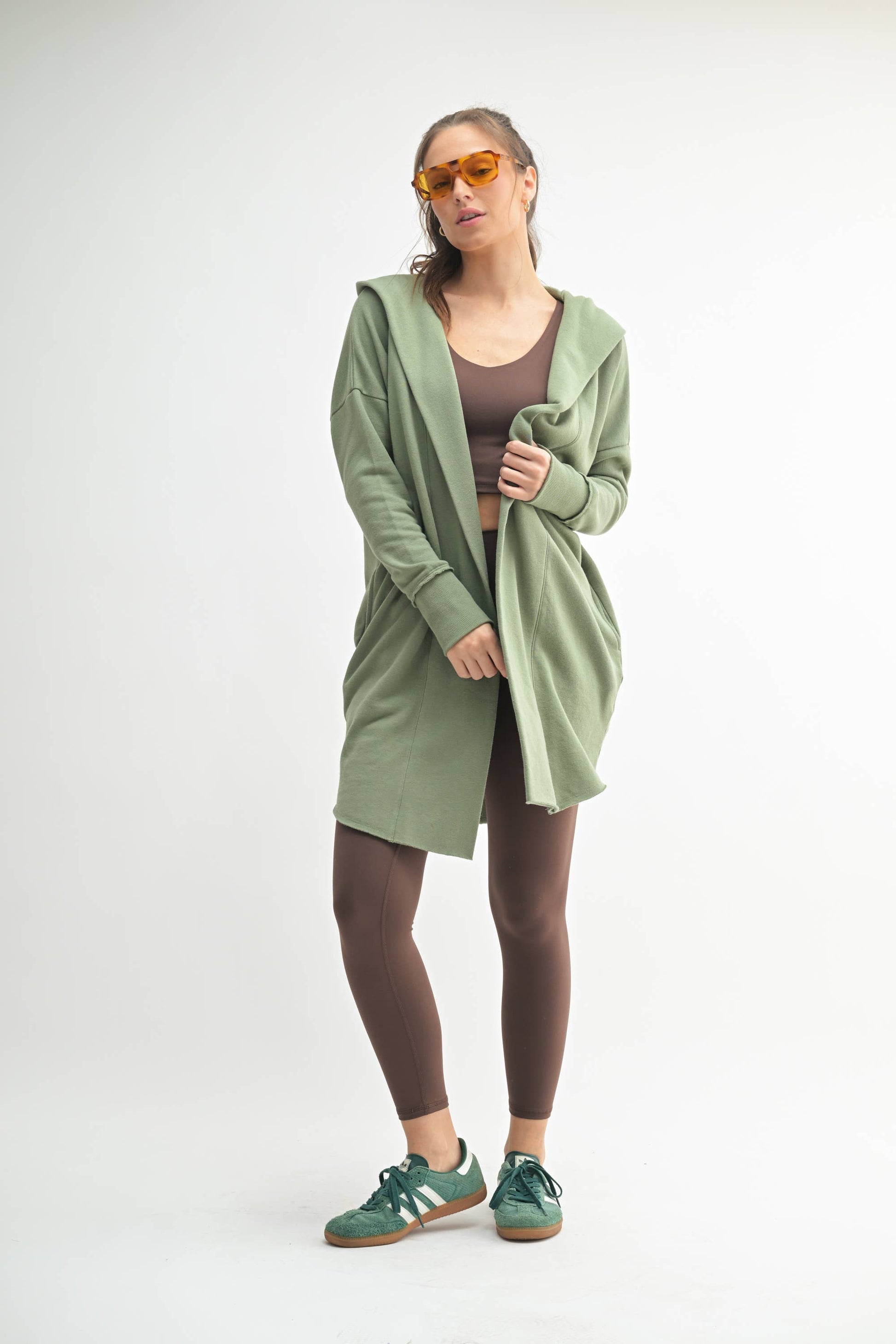This chic longline hoodie cardigan features an open front and wide cuffed sleeves, and is perfect for those autumn outings. Use the pockets to hold your mittens!