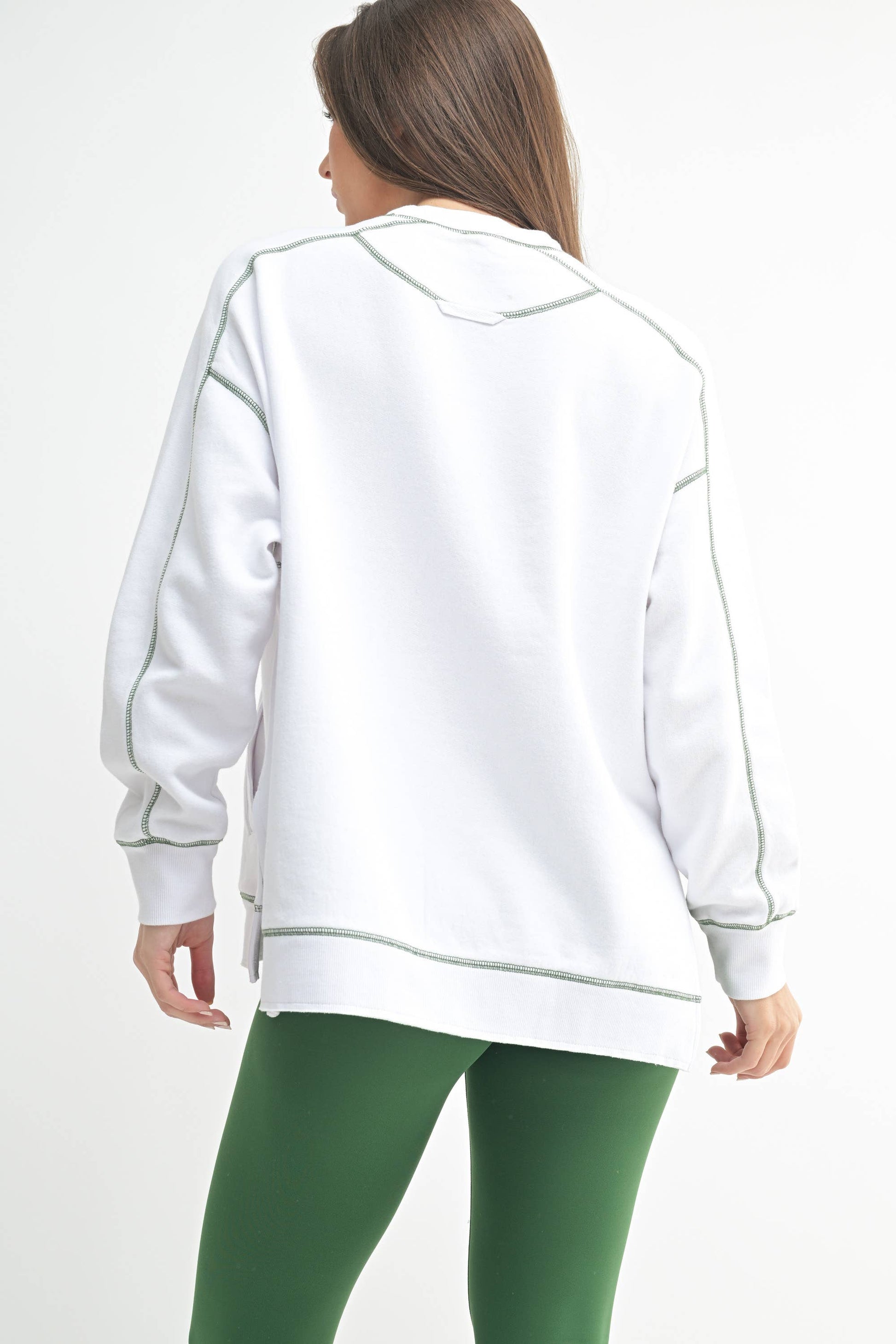 Vintage Stitch Cotton Sweatshirt: WHITE/ BLACK