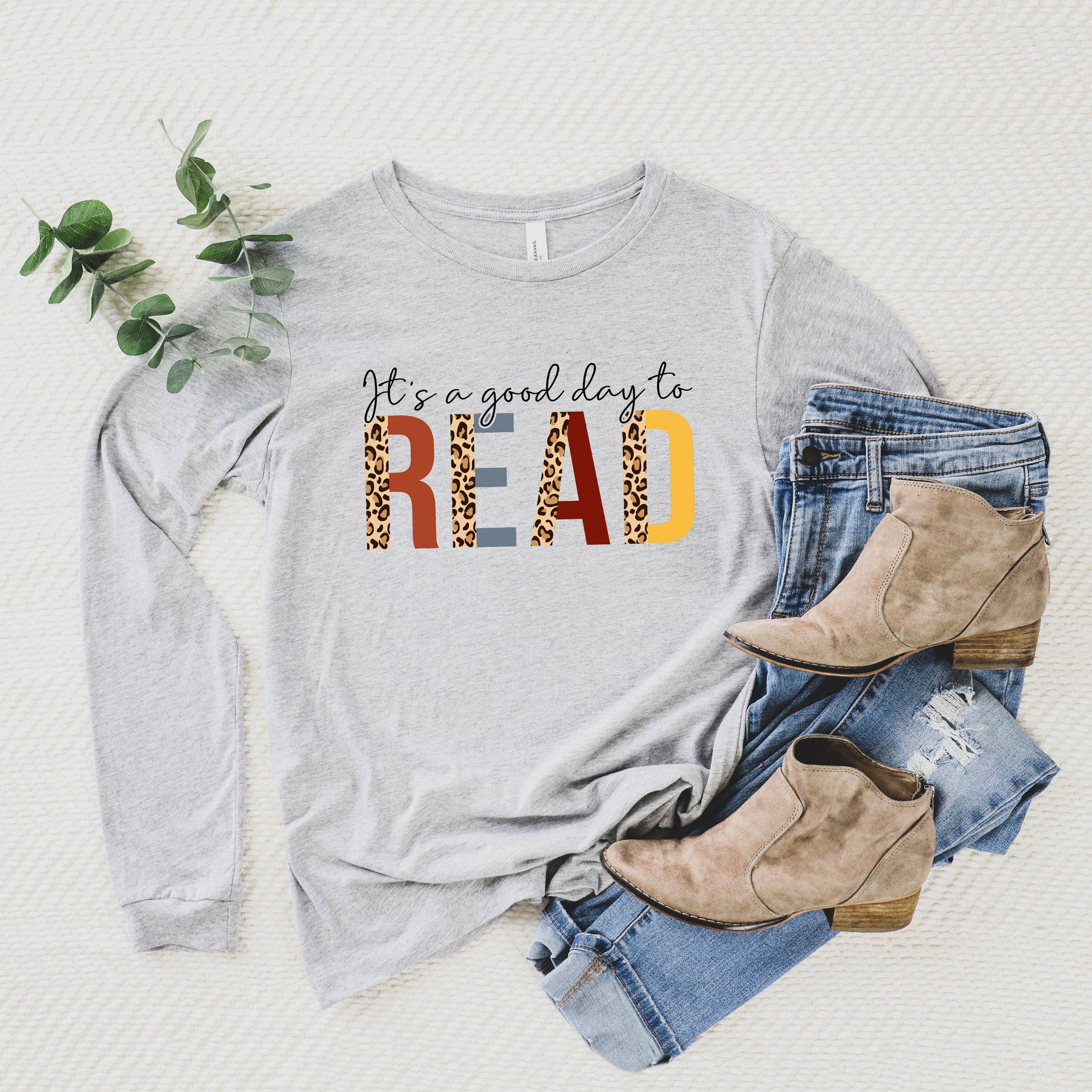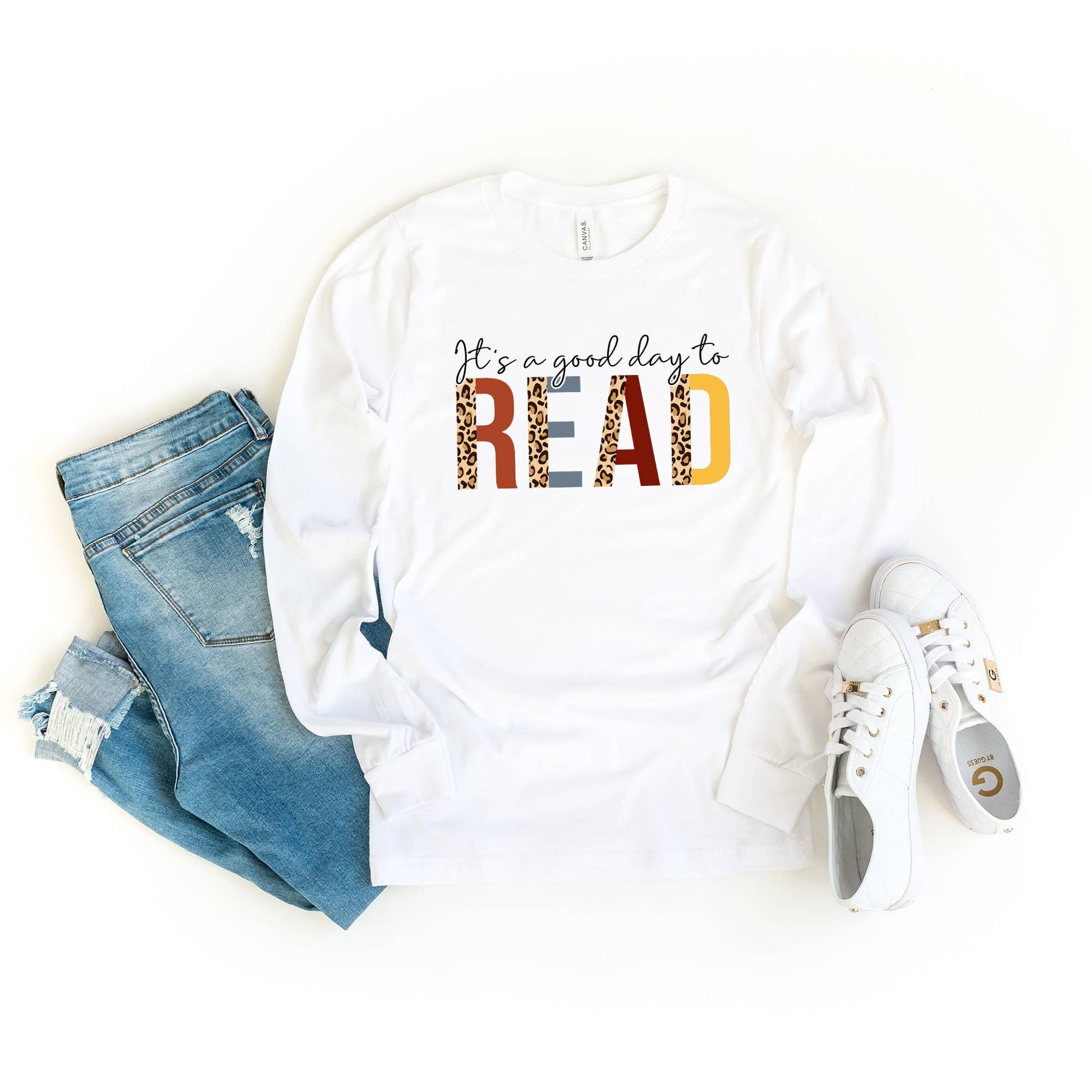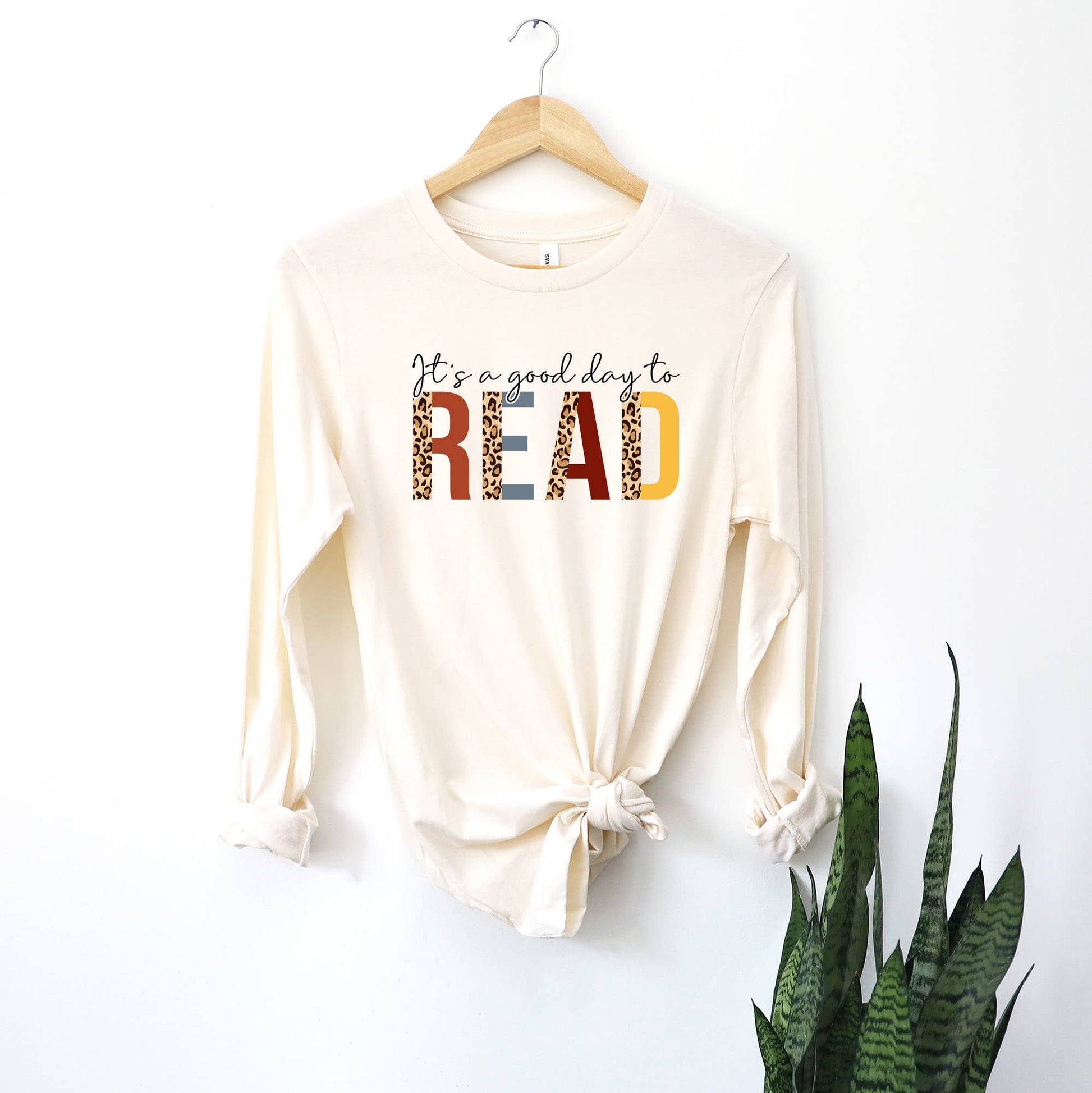 Bella Canvas long sleeve "It's A Good Day To Read Leopard" graphic tee.