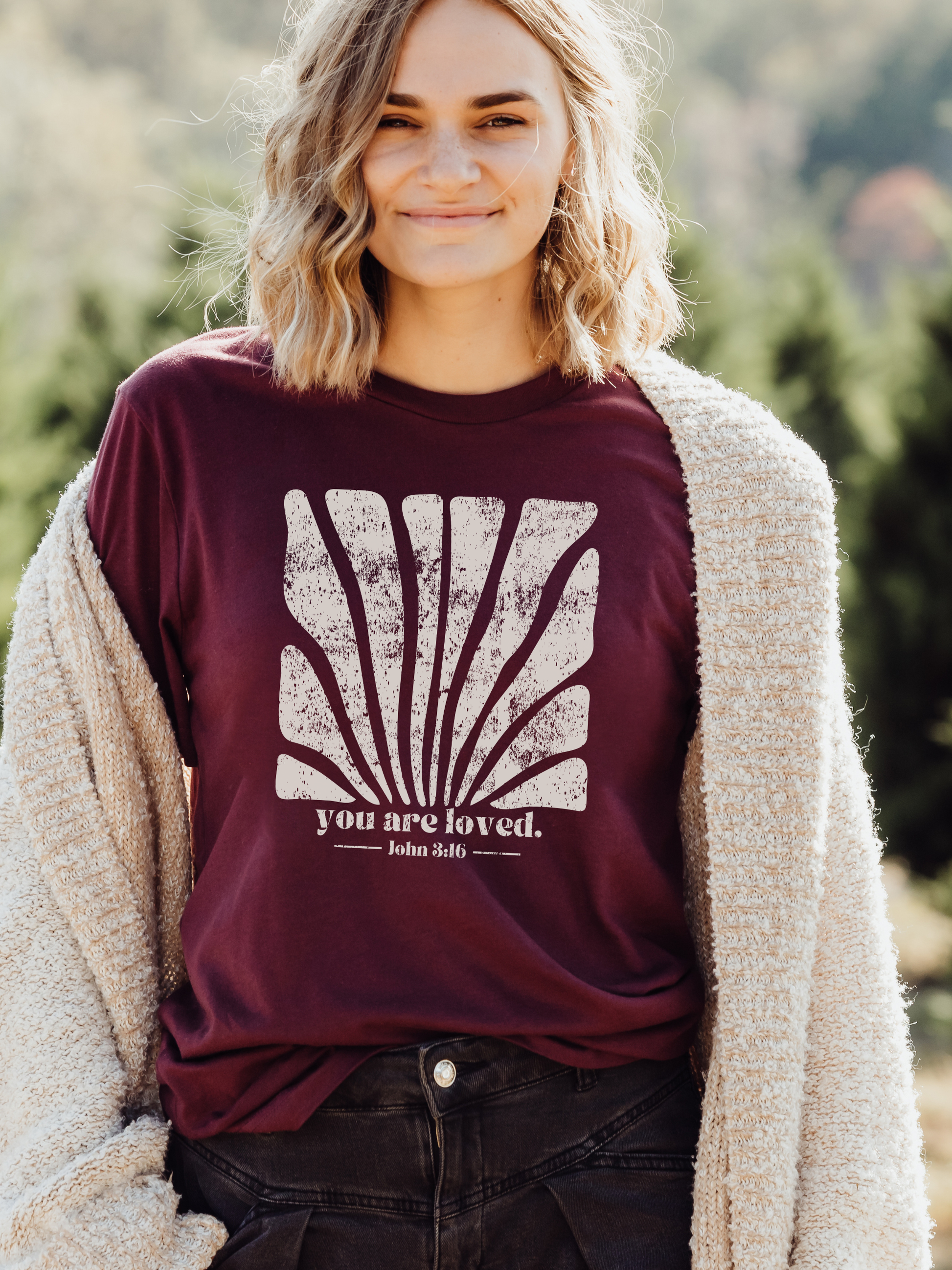 This Bella+Canvas t-shirt, with the words "You are loved -John 3:16" and a retro floral design is perfect for expressing your devotion and sharing God's word with others. The soft comfy fabric is perfect for every day wear, whether you're attending a church service, spending time with friends, or simply going about your daily activities.