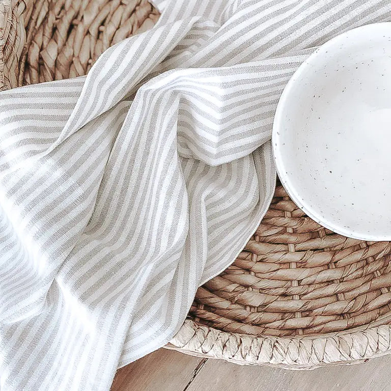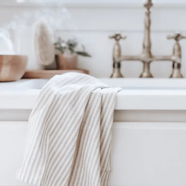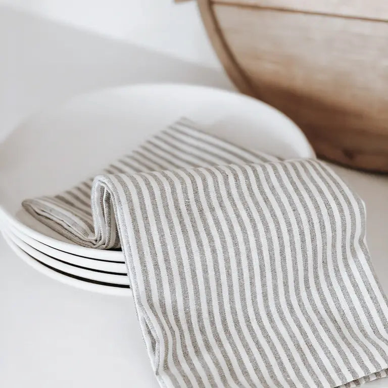 Striped Linen Tea Towel- Beige Striped
