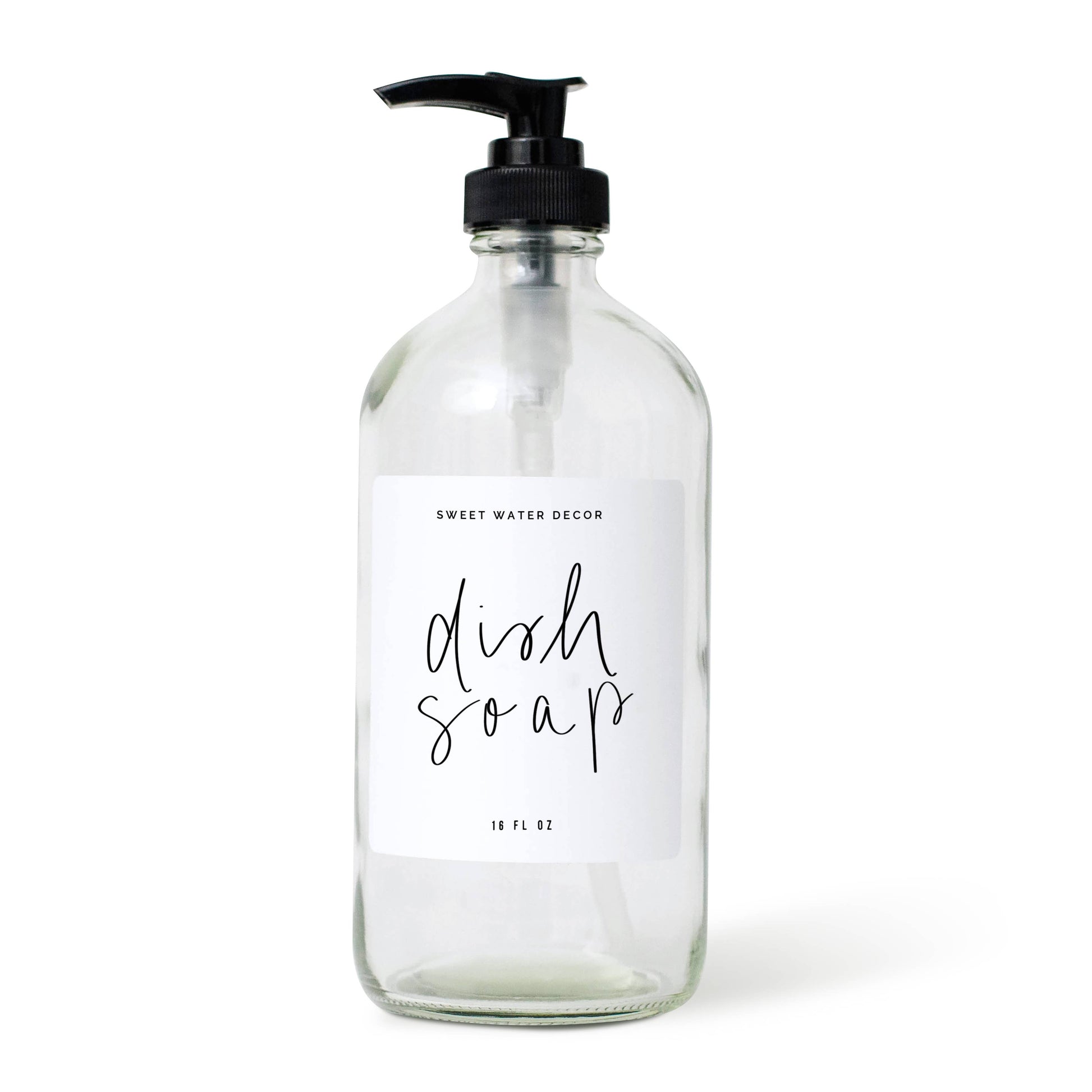 Clear Glass Dish Soap Dispenser - White Label- 16oz
