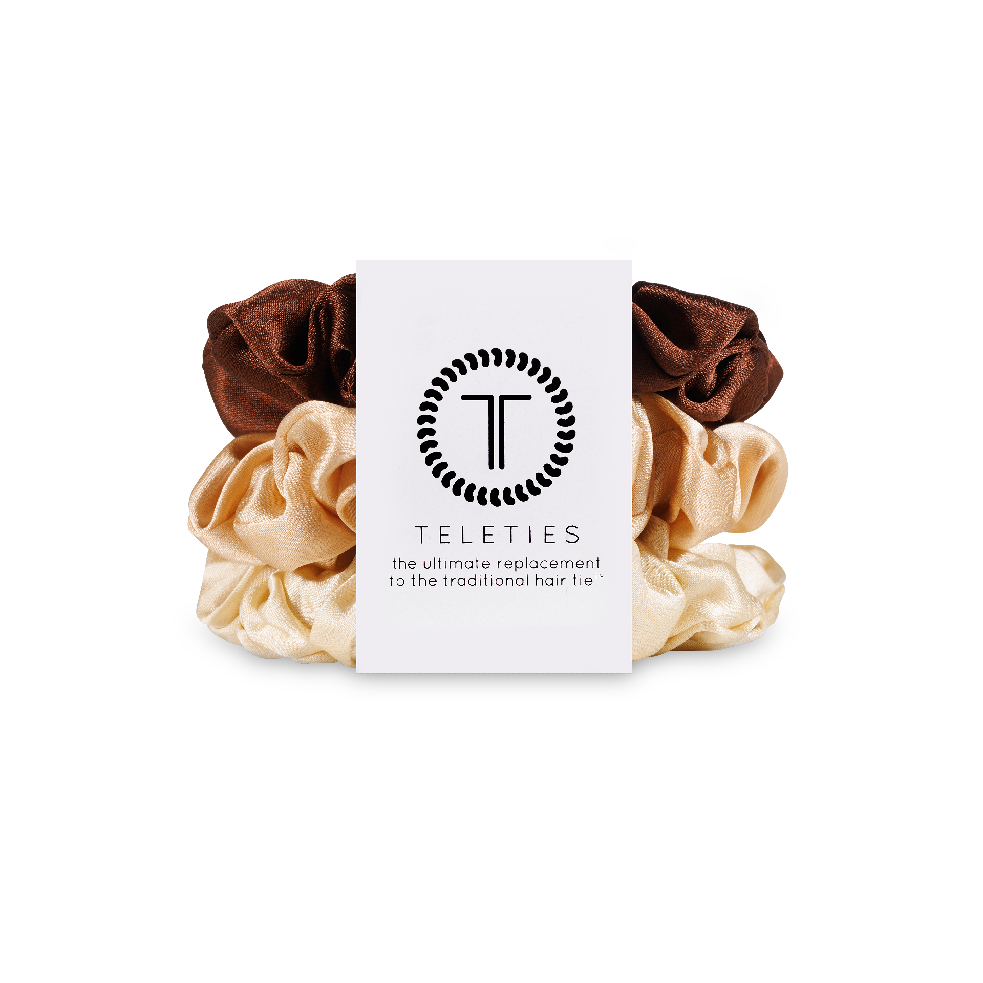 Your TELETIES just got an upgrade! These TELETIES Silk Scrunchies are made of 100% natural silk, making them super soft and gentle for your hair. It also prevents breakage and damage while you snooze. With our innovative TELETIES spiral coil inside, you get the same features of our game-changing hair ties, now covered in silk! Get ready to wake up with hip, happy and healthy hair!
