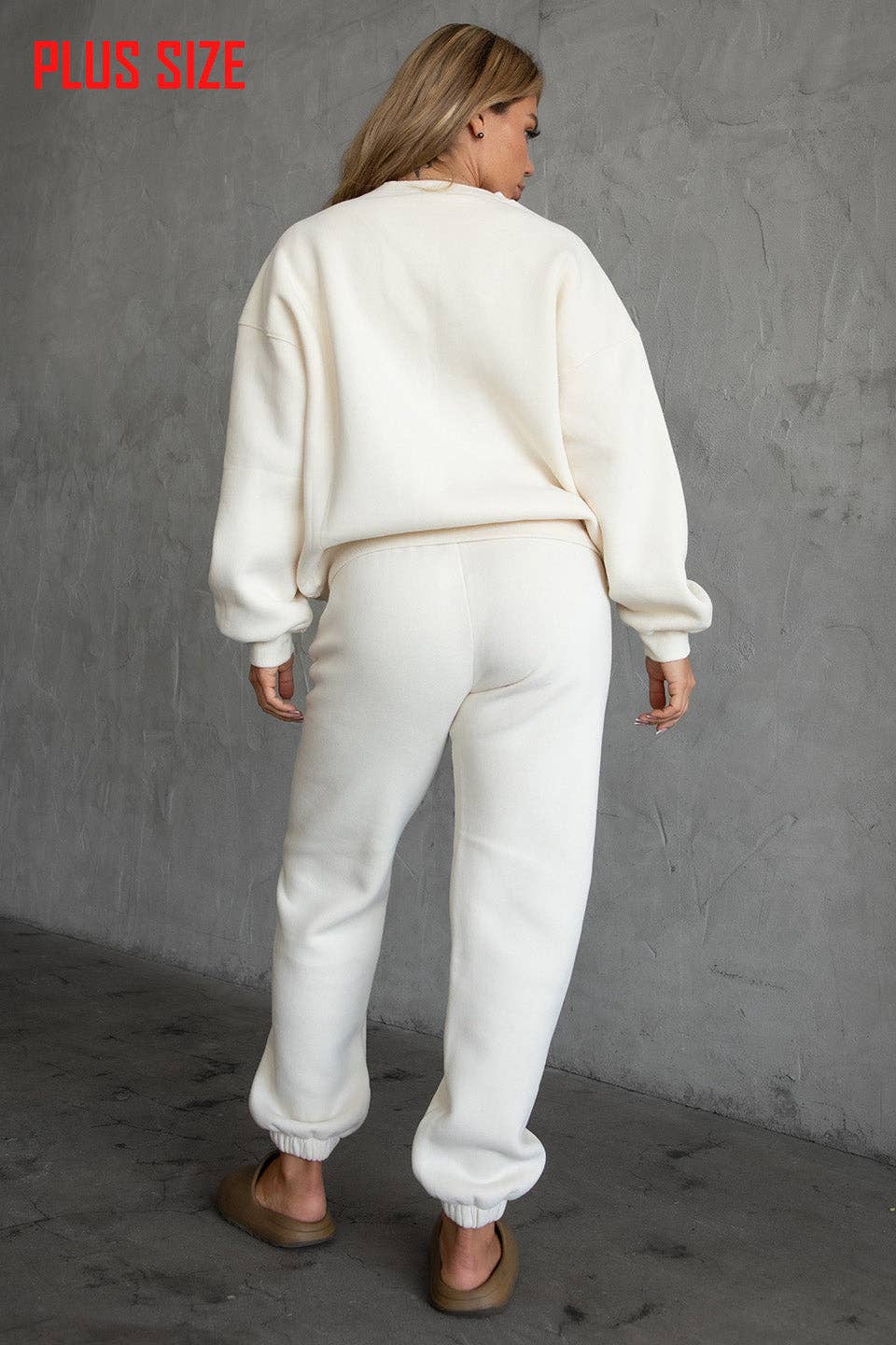 50% OFF Plus Fleece Crew Neck Pullover Sweatshirt: WHITE