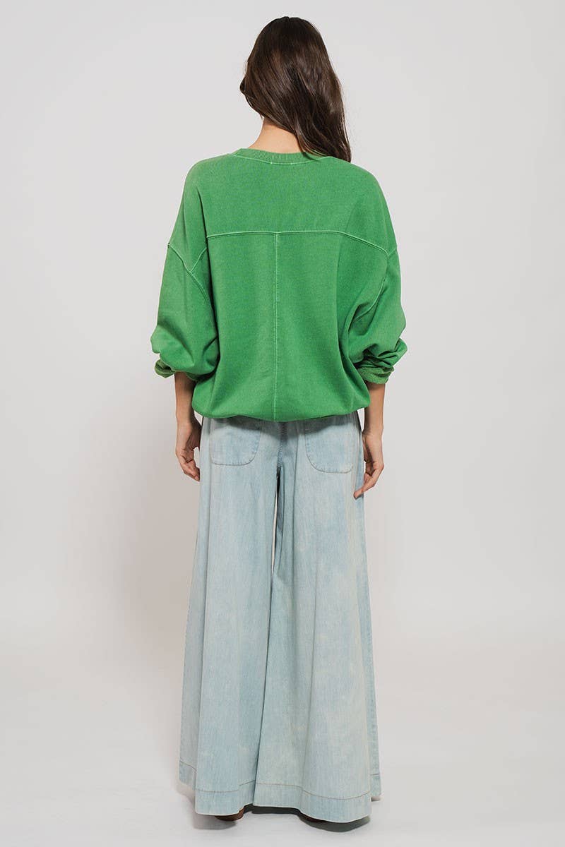 Crew Neck Comfort Washed Organic Cotton Spring Sweatshirt: CHALK